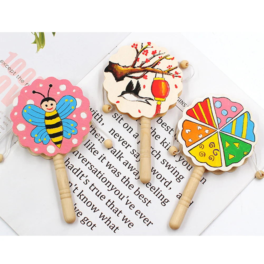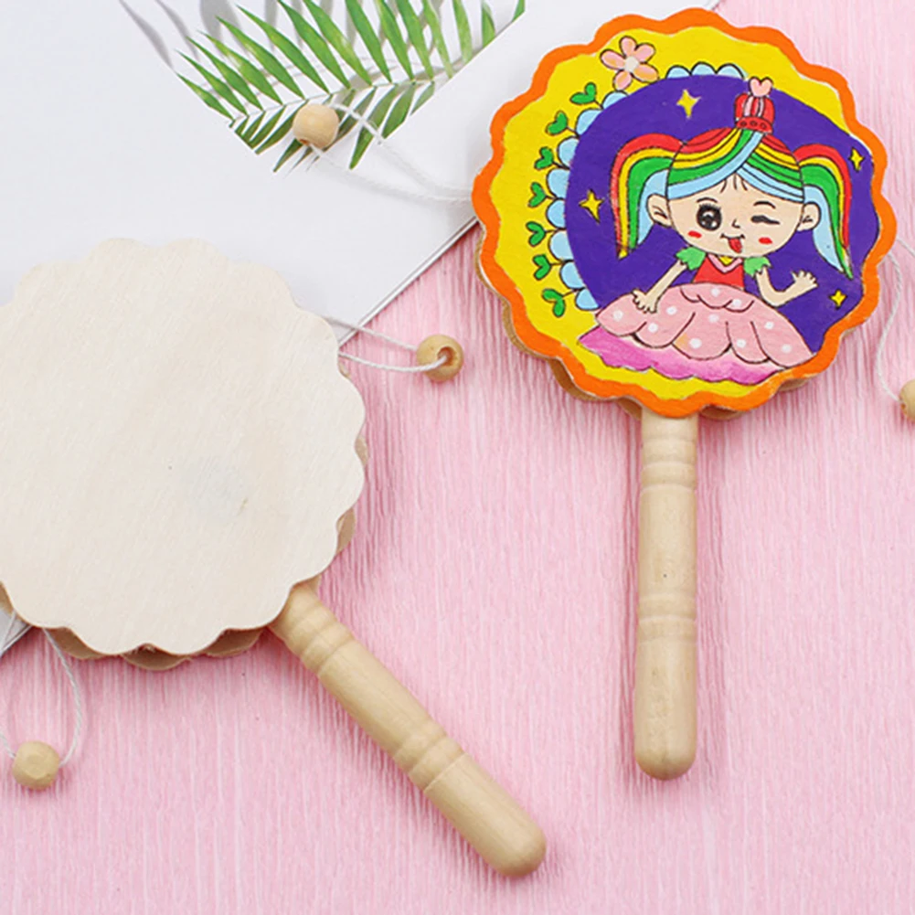 New Wooden Baby Toys Unpainted Shaking Rattle Pellet Drum DIY Painting Crafts Kids Musical Early Educational Musical Toys baby