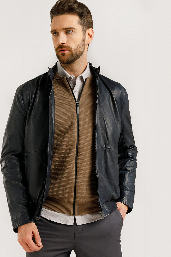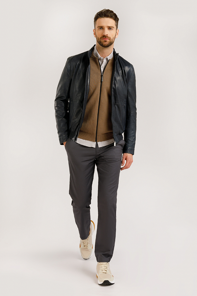 Тренчкот мужской кожаный деловой Повседневный тонкий двубортный длинный плащ