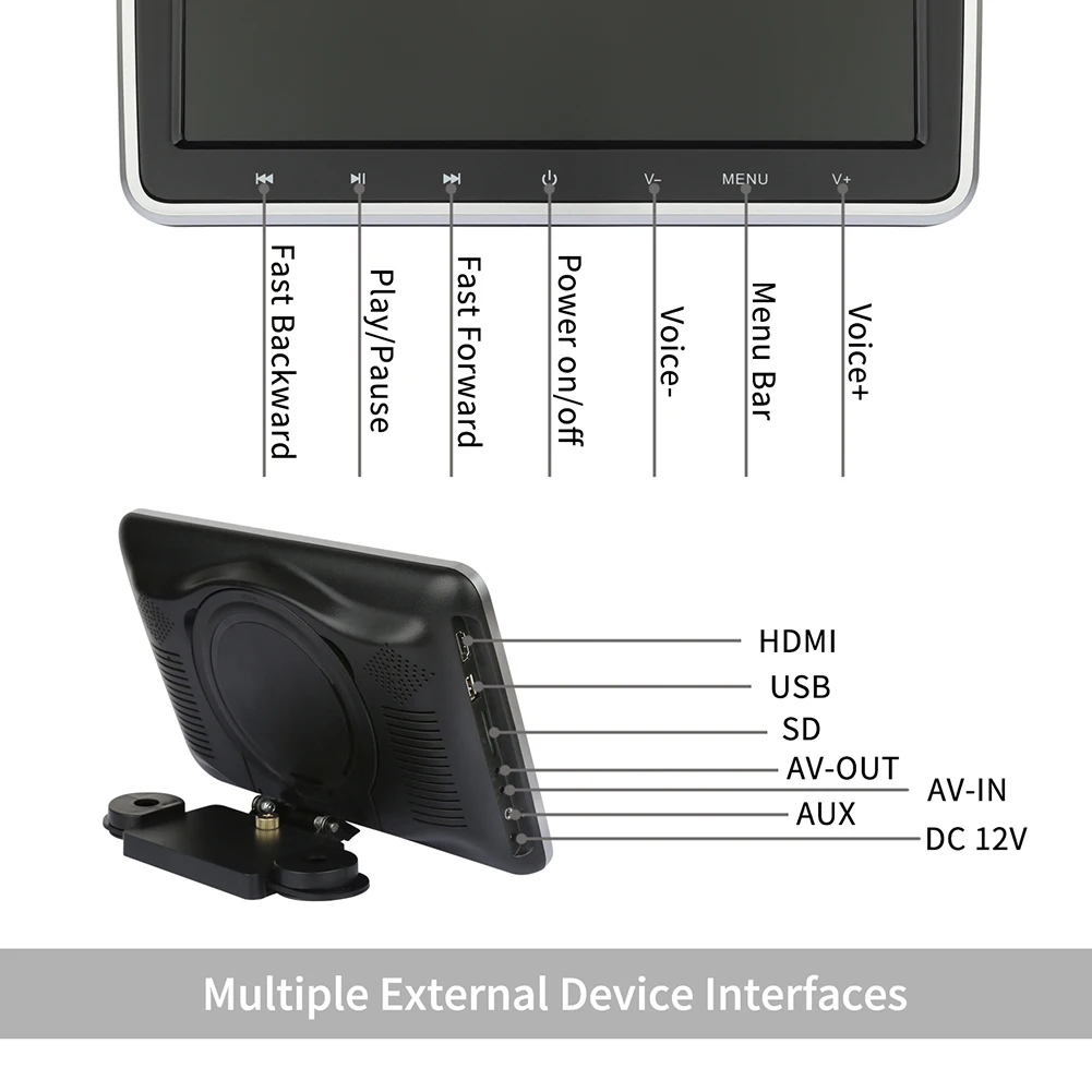 Многофункциональный 10,1 дюймовый 1024*600 HD подголовник автомобильного сиденья сенсорный ключ пульт дистанционного управления DVD плеер монитор