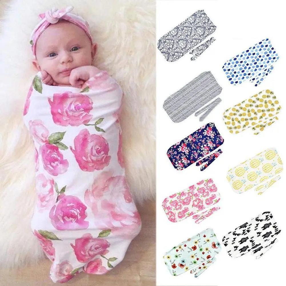 Модный спальный мешок для новорожденных с принтом, детский Пеленальный спальный мешок, мягкое одеяло, повязка на голову, комплект для 0 - 3 месяцев