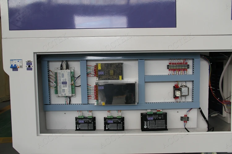 5) шкаф контроллера: плата контроллера Ruida, блок питания, драйверы Leadshine, устройство защиты от утечка питания и т. д.