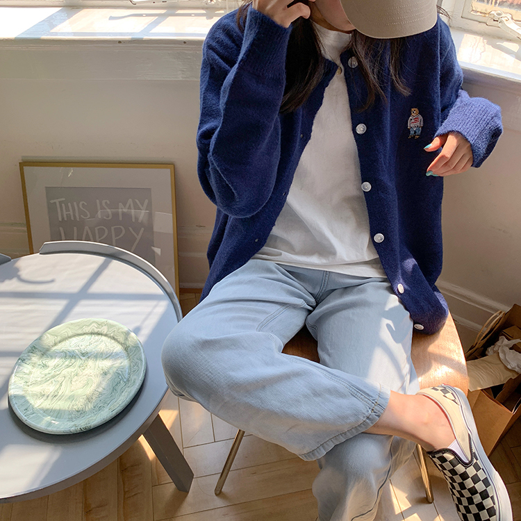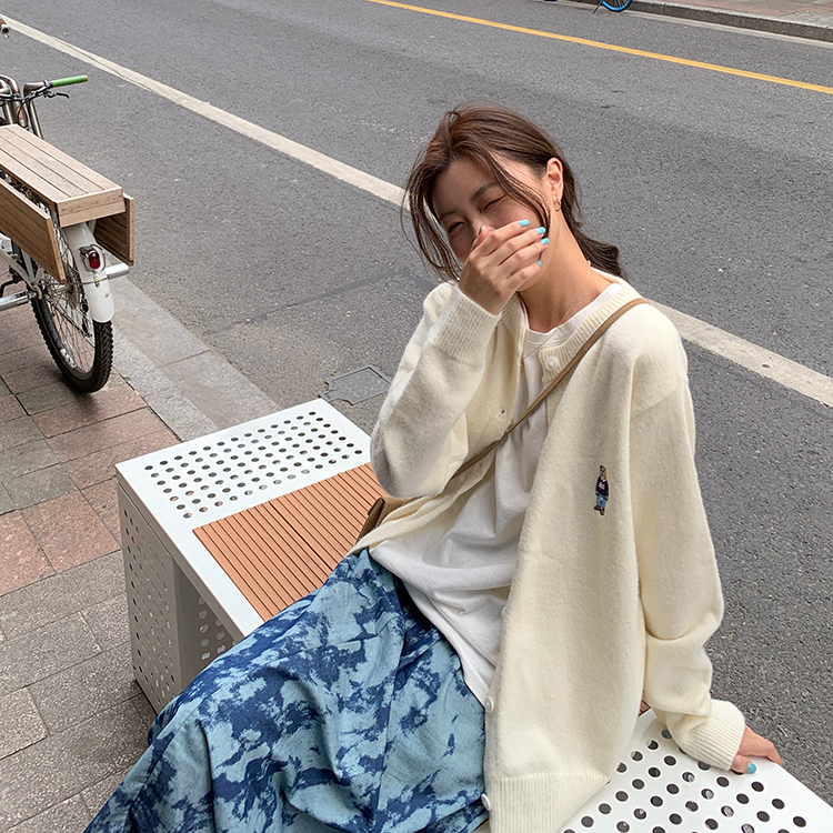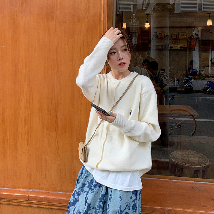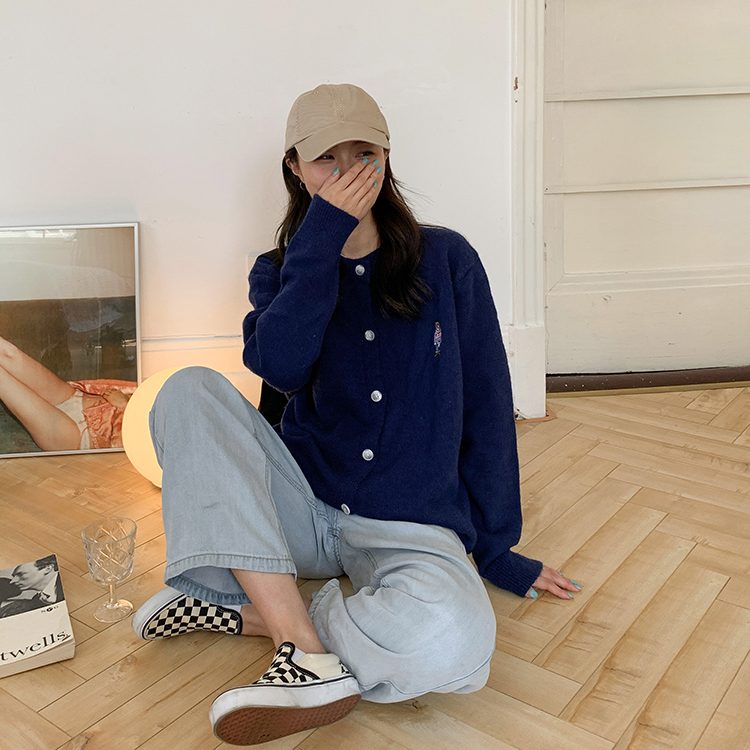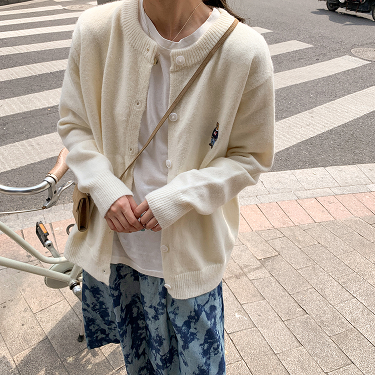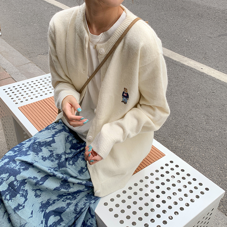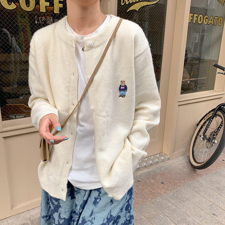 2 цвета 2022 Весна Осень корейский стиль мультфильм медведь вышивка мягкие вязаные кардиганы женские свободные свитера женские