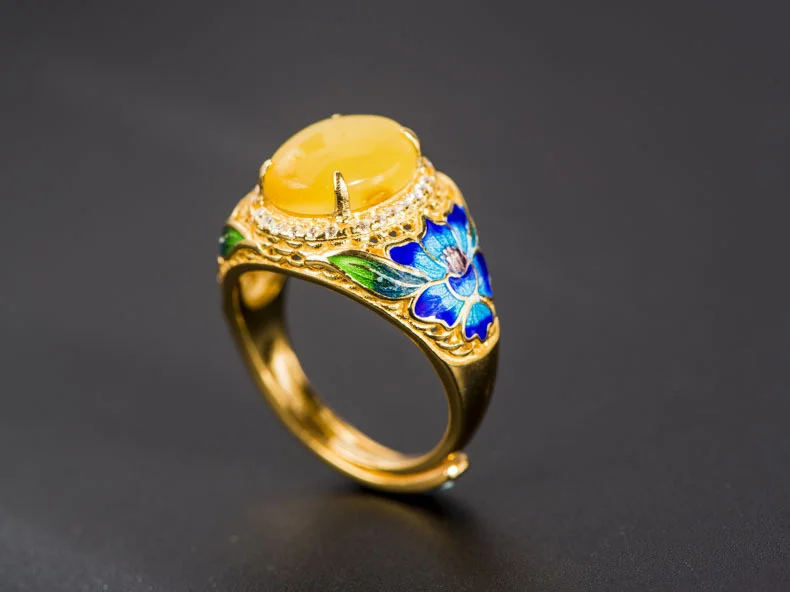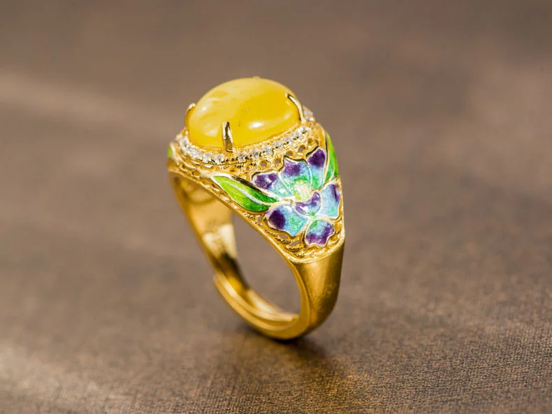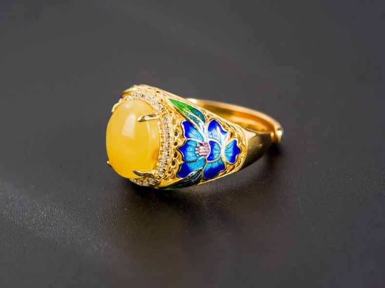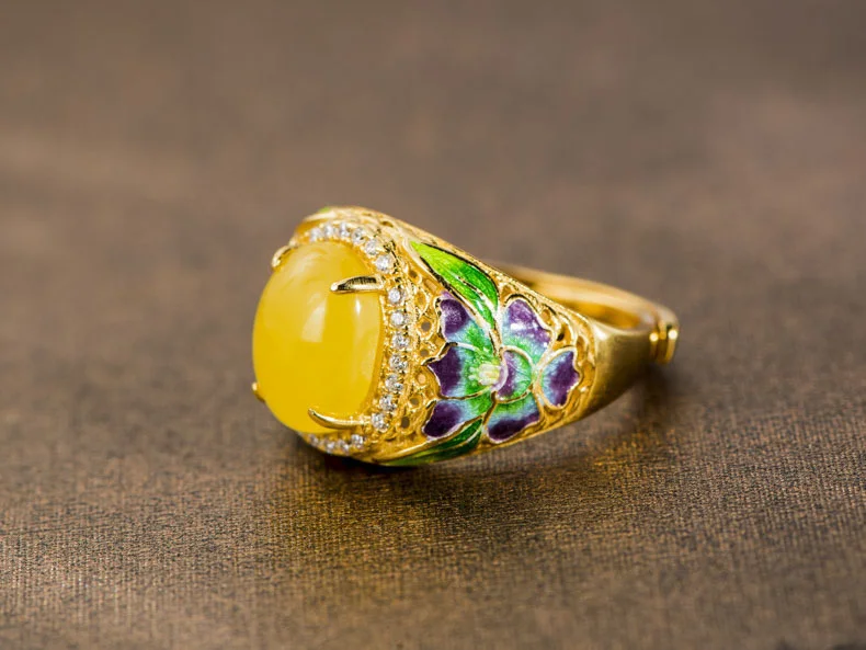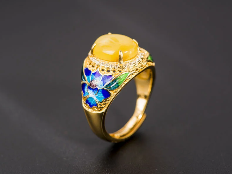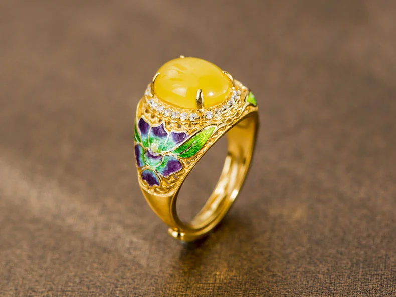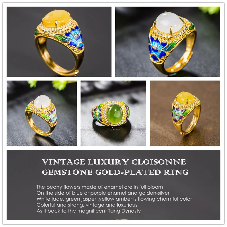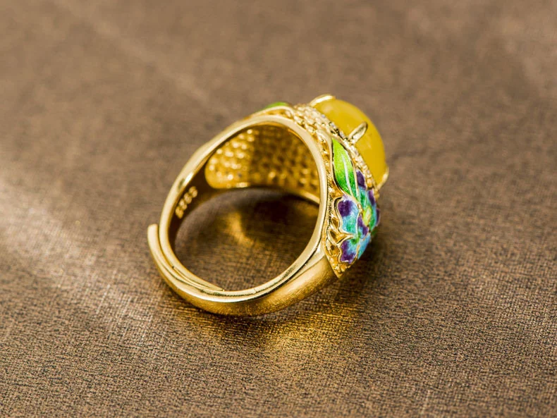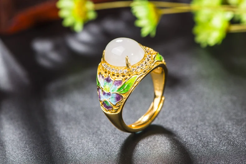 925 пробы серебро (Hetian) нефрита, белые Jade Jasper Янтарный клуазоне Бусина в виде цветка пиона с золотым покрытием с изменяемым размером КОЛЬЦО