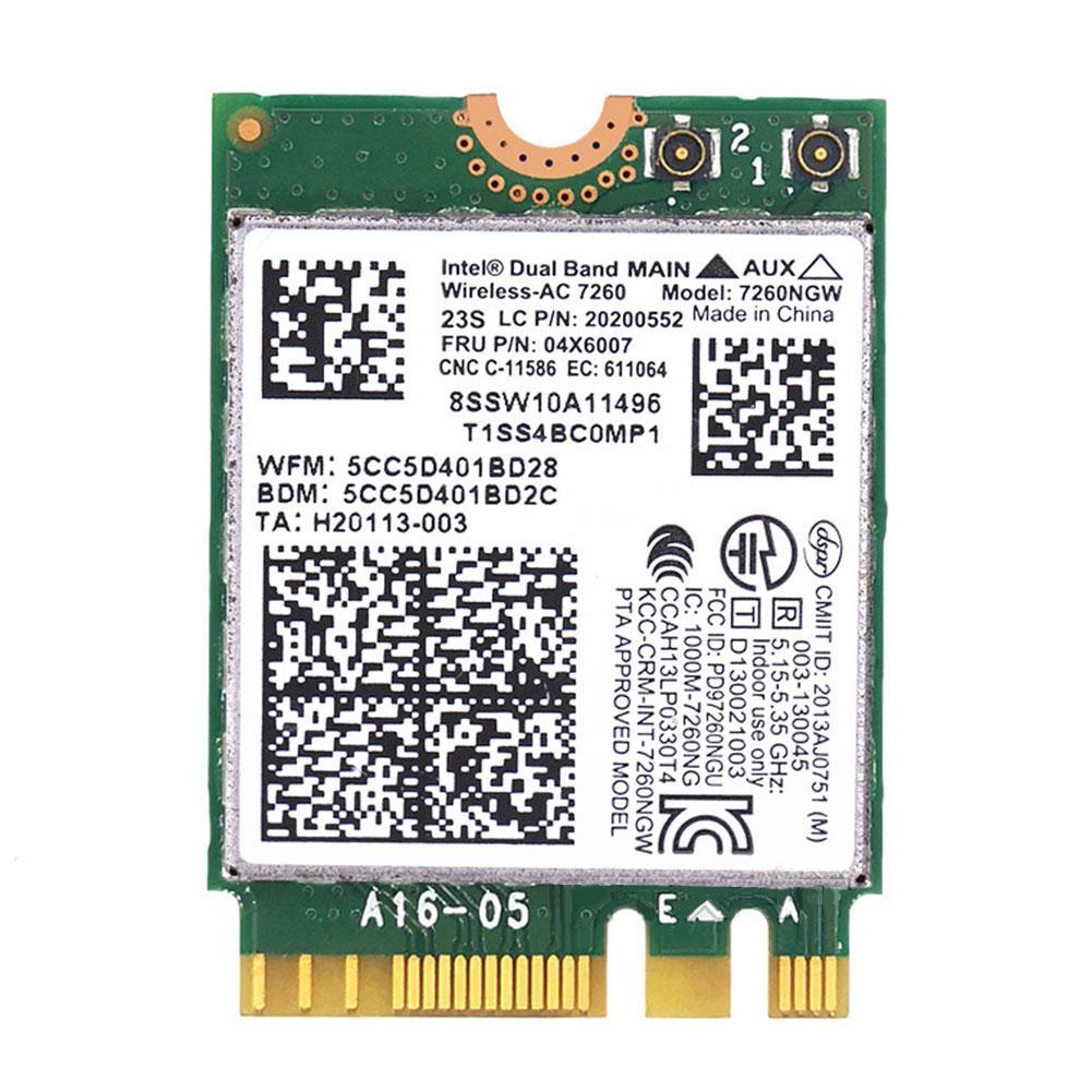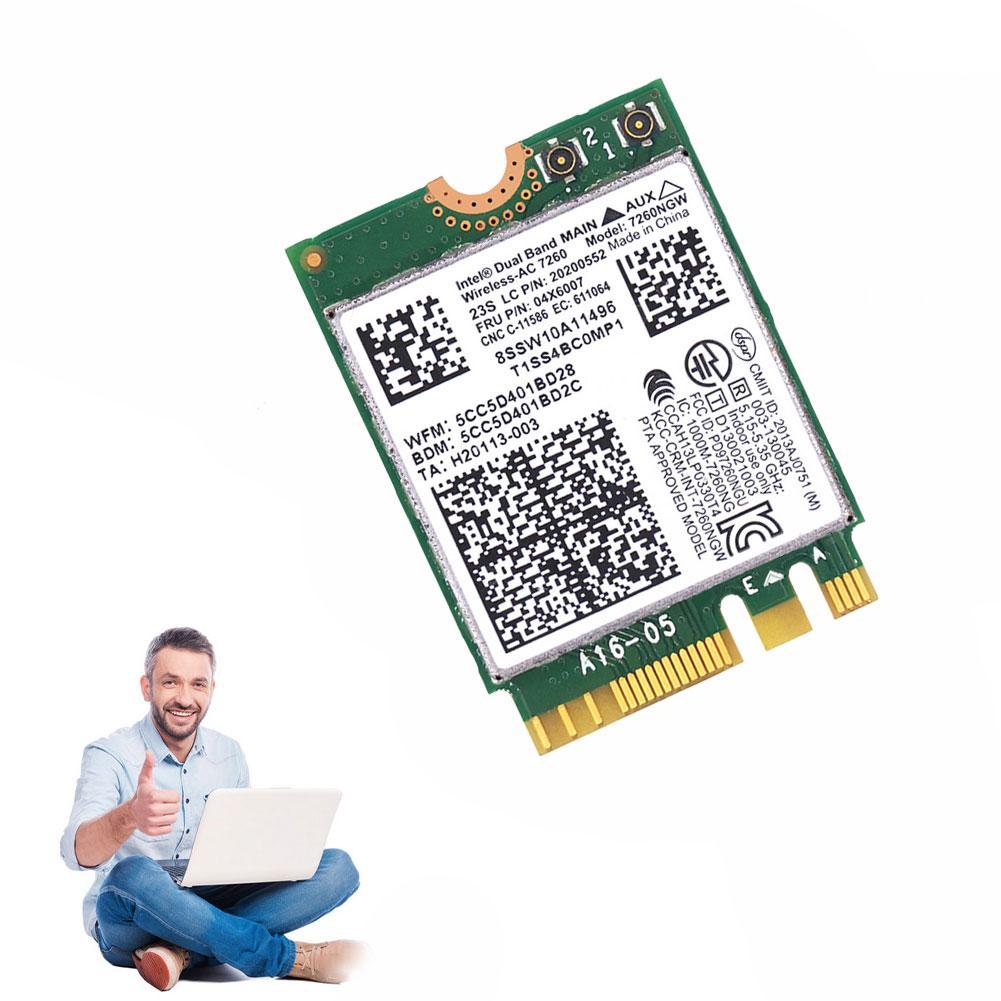 Tips: Only the Lenovo model computers described below are supported, and others are not supported. If you dont know if you can replace the network card on your laptop, you can also ask the customer service to ask before buying! Intel wireless network card for Lenovo computers Product parameters: Product model: 7260NGW 7260AC Lenovo part number: 04X6007 Wireless technology: 802.11AC Wireless speed: 2.4G/300Mbps, 5G/867Mbps Built-in Bluetooth: 4.0 Bluetooth Product interface: NGFF M2 Support system: Win7, Win8, Win10 Compatible machine type: T440, T440P, T440S, T540P X240, X240S, W540, L440, L540 B40-30, B40-70, B40-80 B50-70, B50-80 Y70-70, Y70-80 Y40-70, Y40-70 Y50-70, Y50-80 N40-70 N50-70 YOGA 2PRO, NEW X1C YOGA3Y The package includes: 1*Network card
