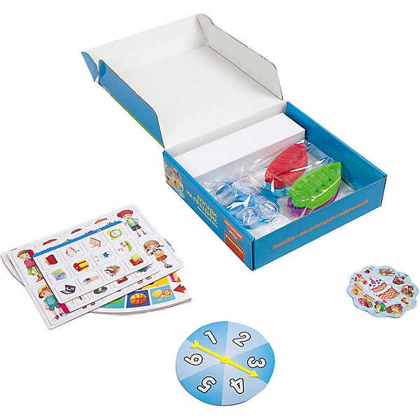 • комплектация: игровое поле-пазл, барабан, 8 карточек с персонажами, 8 подставок, стол, 28 карточек с подарками, 4 лодочки