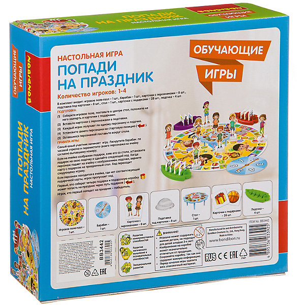 Игра благотворно влияет на развитие мышления, концентрации и внимания. Перед началом игры соберите игровое поле, накройте скатертью и положите карточки с подарками. Персонажей установите на подставки, распределите между участниками и поставьте на старт, а оставшихся- вокруг стола на игровом поле. Так же каждый игрок получает одну лодочку. Игру начинает самый юный участник, раскрутив барабан по часовой стрелке. Персонажи перемещаются согласно выпавшему номеру и по пути собирают подарки. Побеждает тот, кто первый попадет на праздник.