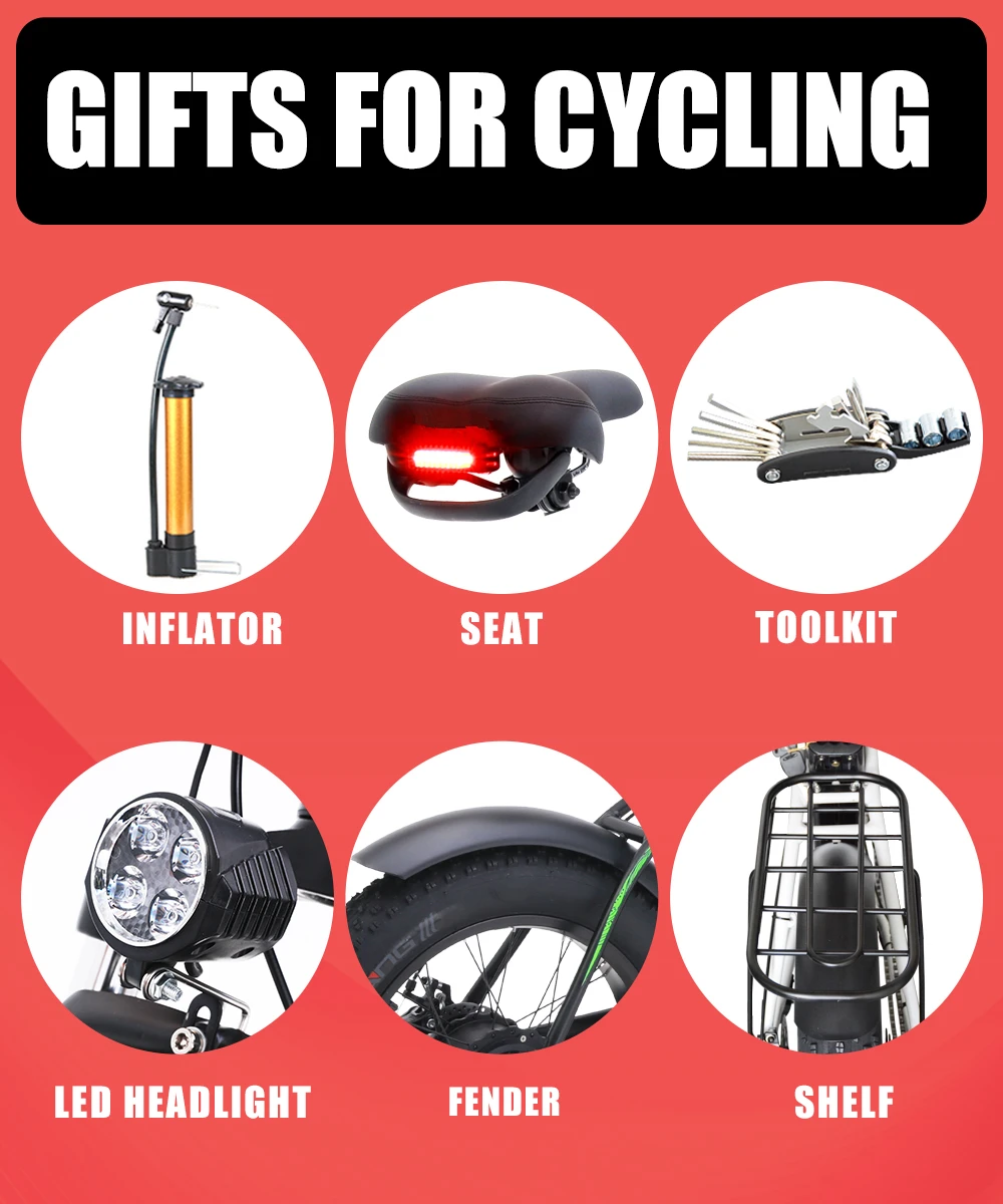 ★Хвост светильник * 1 (независимых источника питания и переключателем, два светильник ing режимы: always on/мигающий) ★Светодиодный фонарь * 1 (4 держателя лампы, может освещать расстояние 10 метров) ★Портативный сборочный инструмент * ★Багажная стойка * 1 ★Брызговик * 1 ★Насос * 1