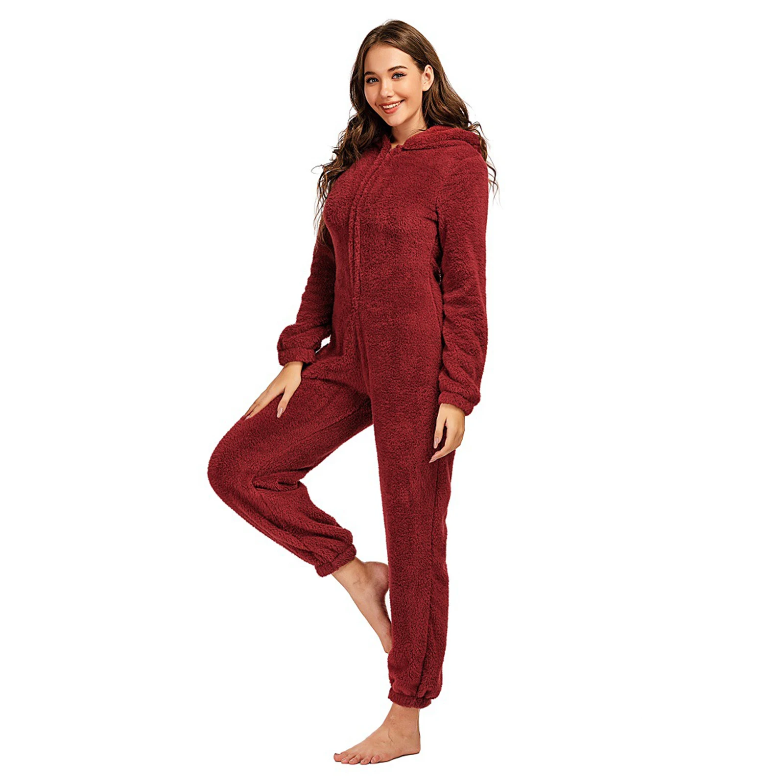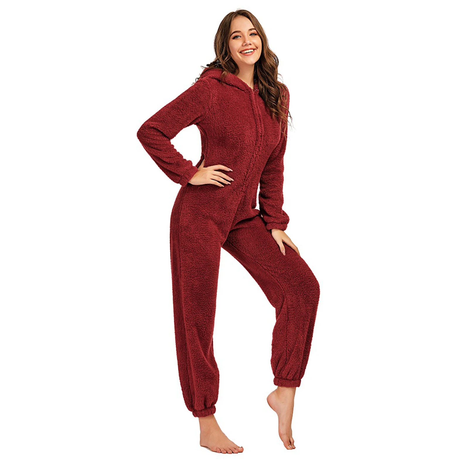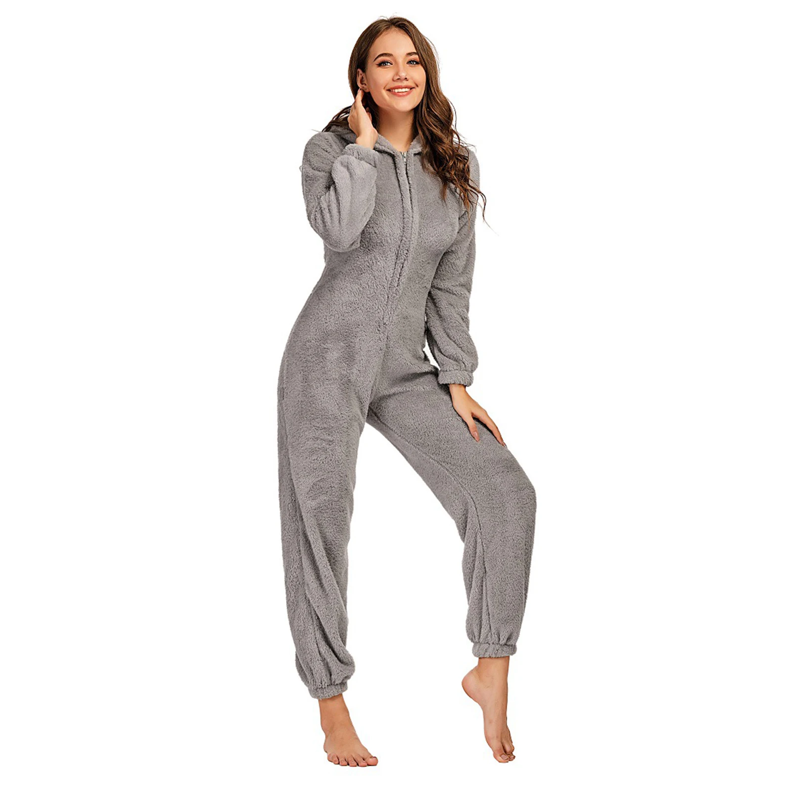 Женский зимний Плюшевый комбинезон, пижама с длинным рукавом на молнии с капюшоном, толстый теплый комбинезон
