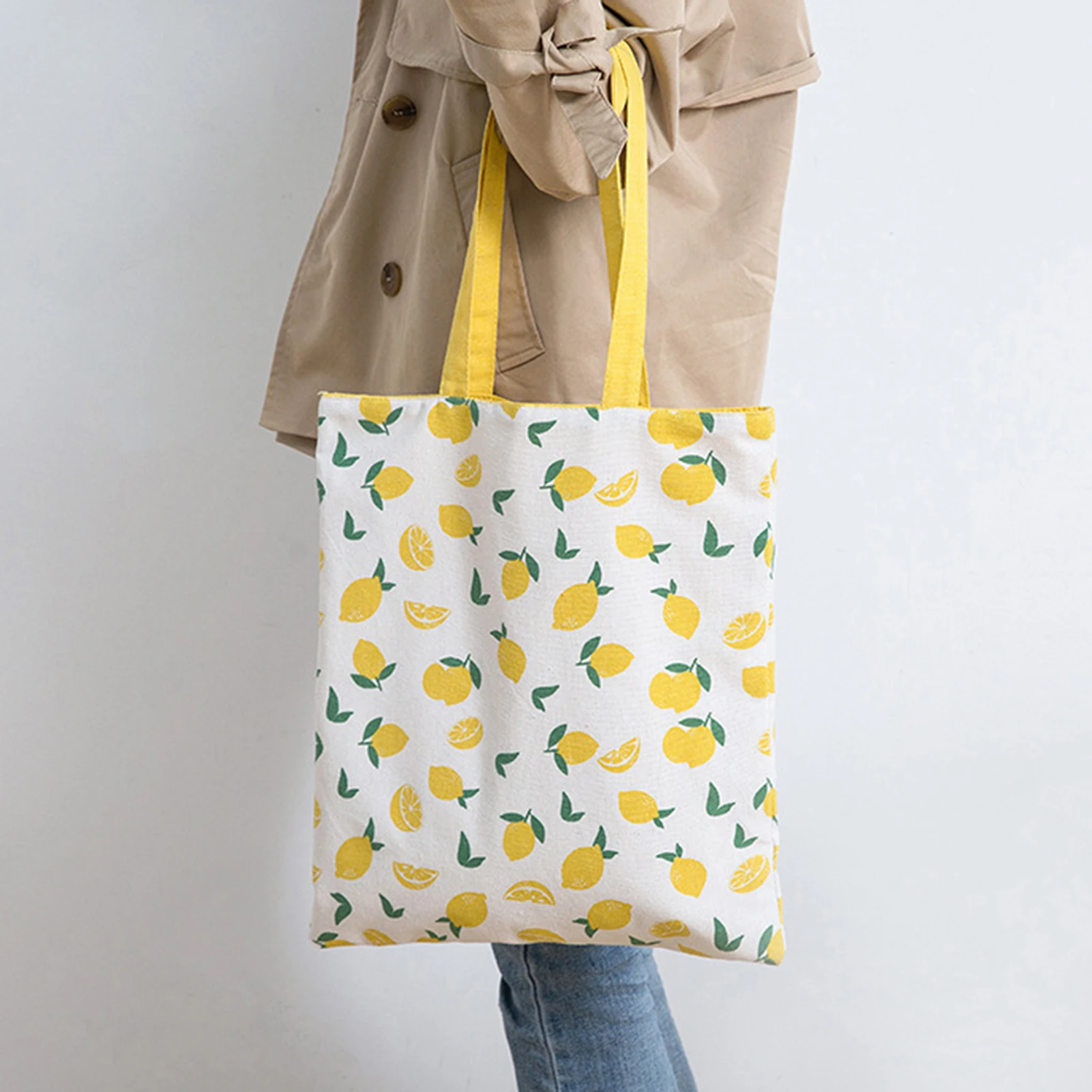 Двухсторонняя сумка из хлопка и льна с принтом вишни, сумка для хранения покупок
