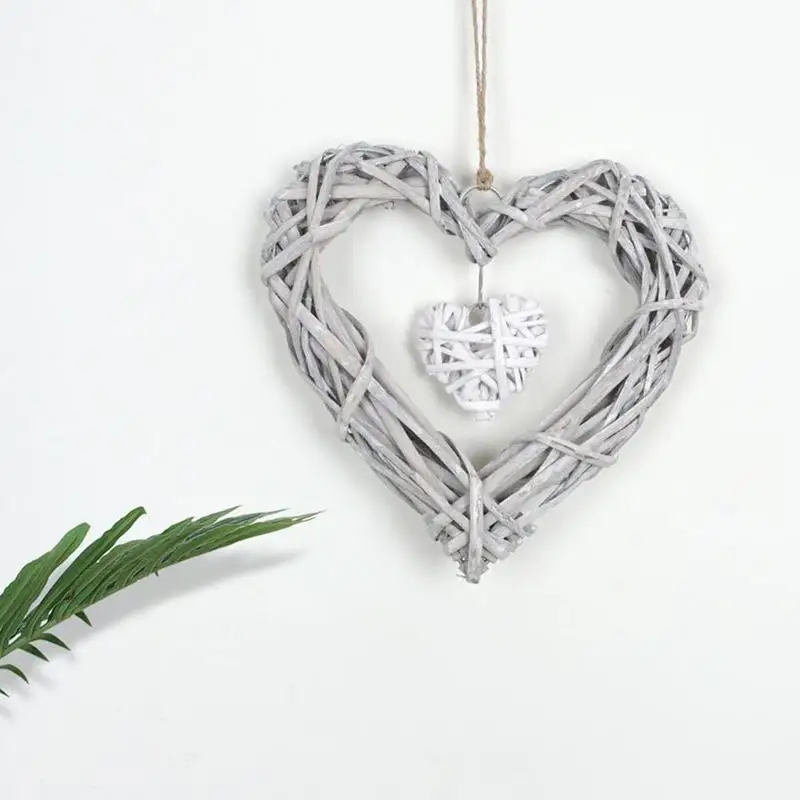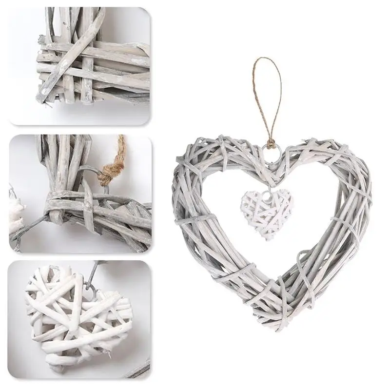 1. Этот Плетеный венок в форме сердца имеет подвесное белое плетеное сердце в центре и петлю для подвешивания