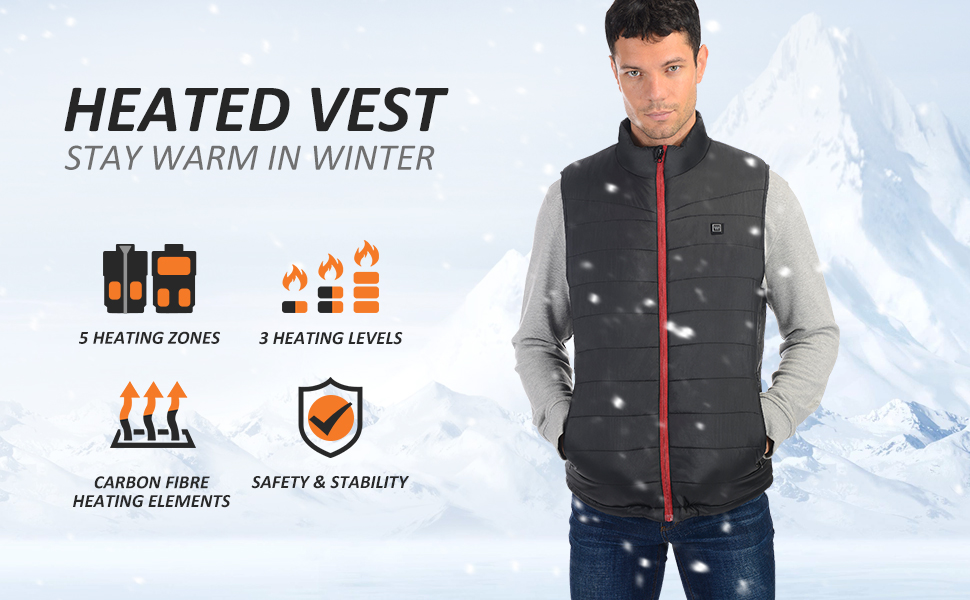 【KEEP YOUR BODY toasty】встроенный с качественными нагревательными элементами из углеродного волокна и 3 уровнями нагрева (140 °F, 122 °F & 104 °F) для создания стабильного тепла для 5 частей тела, включая спину, живот, И талии, помогает сохранить тепло тела, способствует циркуляции крови.
