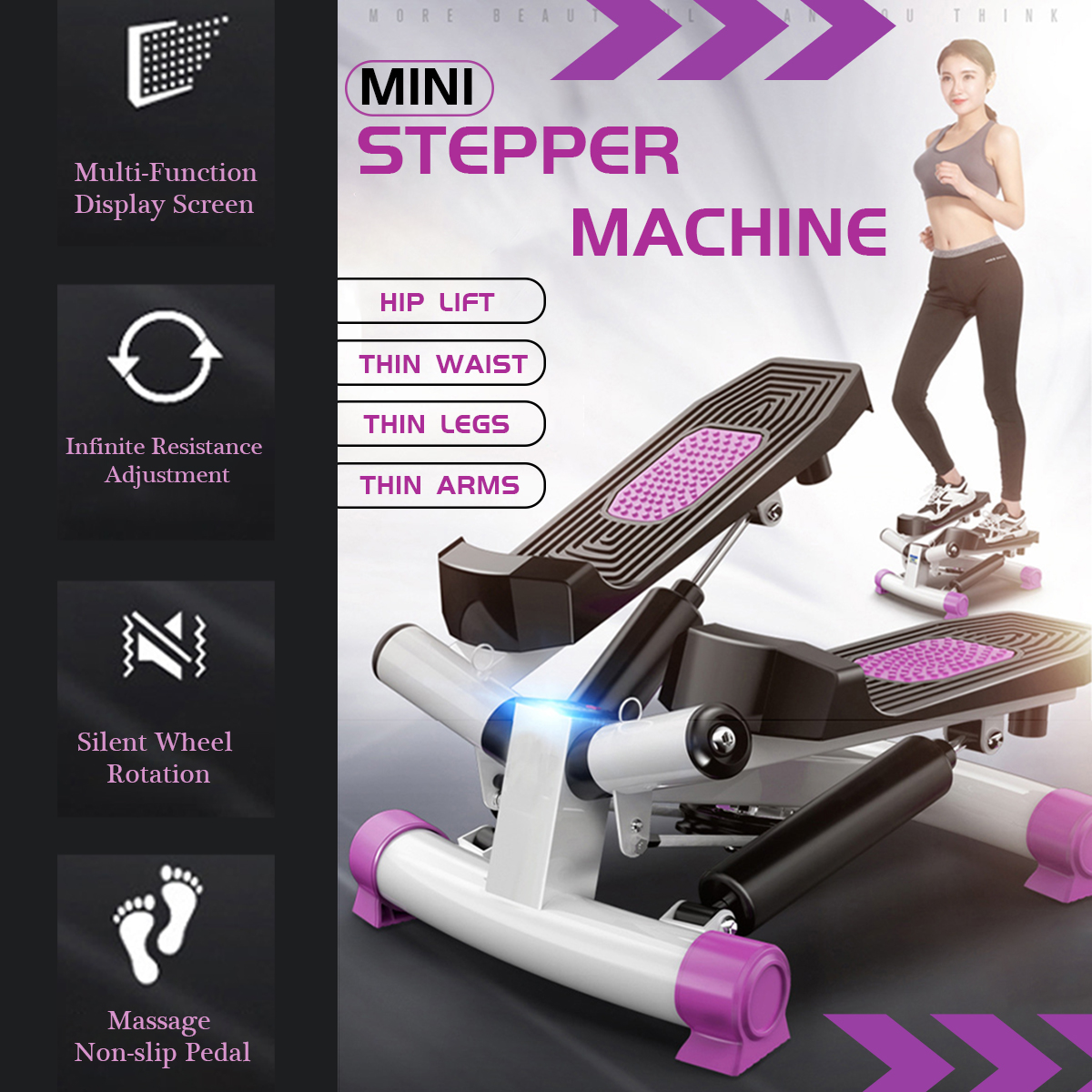 -Удары на педали способствуют циркуляции крови и ускоряют обмен веществ во время физических упражнений. Нескользящая амортизация, отсутствие травм колена.