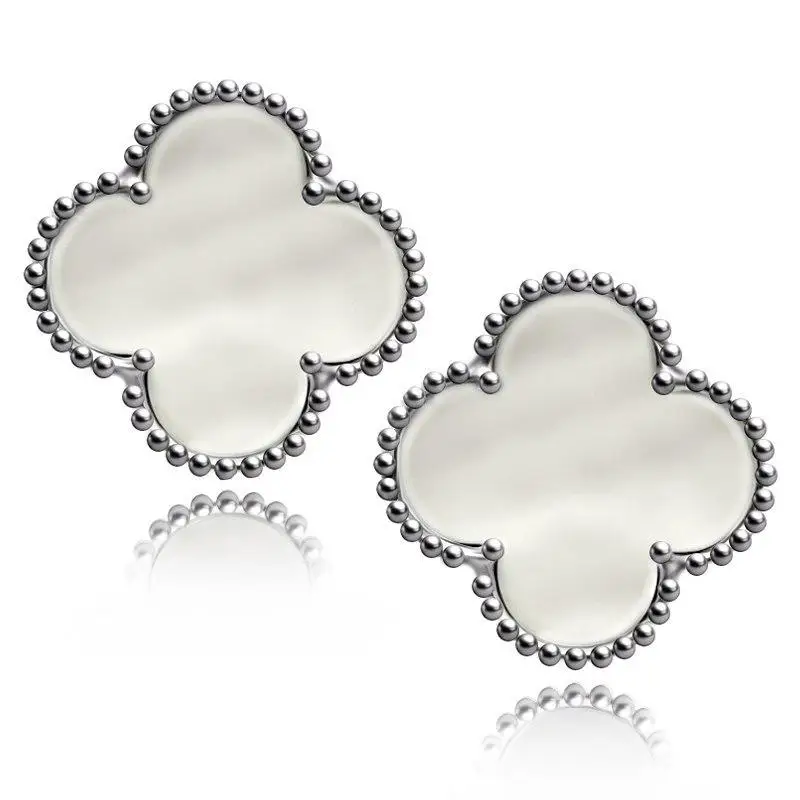 Earrings made of 925 silver clover with an insert of natural sea mother of pearl, attention to Sea Mother of Pearl has a texture, and sometimes recesses, perfectly smooth plastic only. We produce this model of earrings 6 year. And studied all the minuses in the production and wish of our customers, so we use only natural material and high quality, are made home jewelry silver chest, covered with gold, gold, gold, and protection against darkening and scratches, the size of the earring is 14mm. Please yourself and loved ones with pleasant gifts and get
