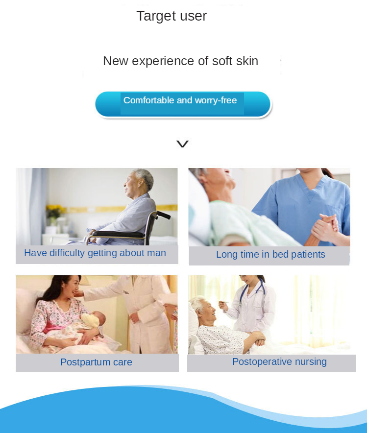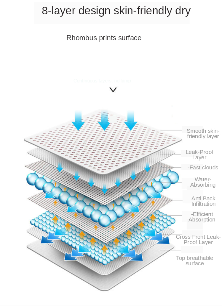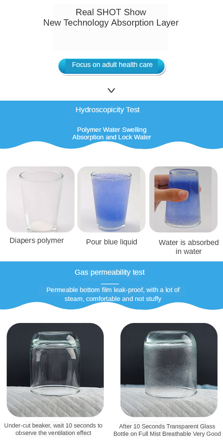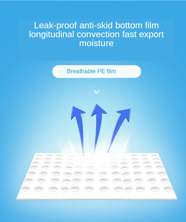 Основная особенность: 1. Белая PE пластиковая Водонепроницаемая подложка 2. Мягкий верхний лист, ткань как задний лист, чувствовать себя комфортно 3. Супер Поглощение, Блокировка воды, сохраняет кожу сухой 4. Тип брюк, легко надевать и снимать
