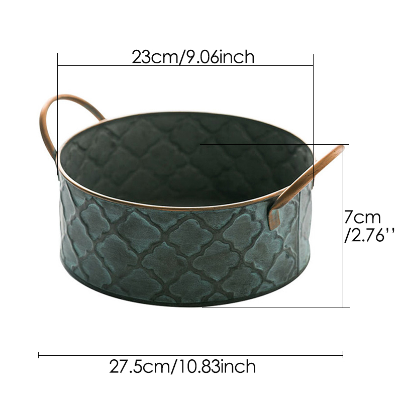 Материал: Железное ремесло Размер: 23*7 см/9,06*2,76 дюйма (Д * В) Применение: Дом, церковь, свадьба, вечерние, кафе, кухня Использование: Домашний поднос, реквизит для фотографий, поднос для украшения, корзина для хлеба Посылка включает: 1x круглая железная корзина в стиле ретро Советы: 1. Ручная работа, цвет не может быть полностью однородным, будет царапина, при транспортировке неизбежно возникнут небольшие удары, если у вас есть идеальные требования к изделиям ручной работы, пожалуйста, выбирайте внимательно. 2. Железный процесс не изготовлен из нержавеющей стали. Хотя он имеет антиокислительное покрытие, его нужно использовать с осторожностью. Его следует разместить в сухом и проветриваемом месте. 3. При стирке pH должен составлять 11-11,5. Если он поцарапан, его можно слегка отполировать зубной пастой. Если у вас есть пятна чая, вы можете мыть их с лимонным соком или уксусом. 4. Он имеет серовато-зеленый оттенок и может быть протерт несколько раз влажной тканью.Фактическое изображение товара: