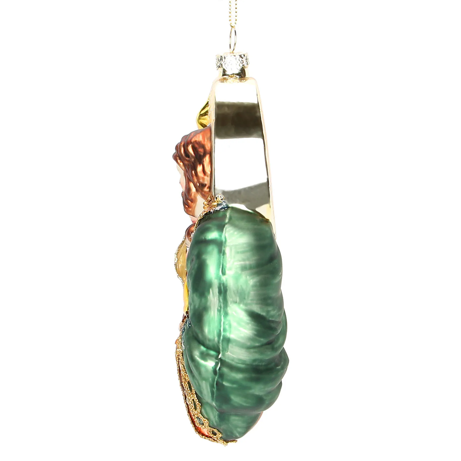 【Висячие украшения из выдувного стекла 】рождественское украшение Девы Марии изготовлено с использованием тех же техник, которые возникли в 19-го века. Расплавленное стекло выдувается во рту в мелко вырезанную форму, прежде чем горячий раствор жидкого серебра заливается внутрь.