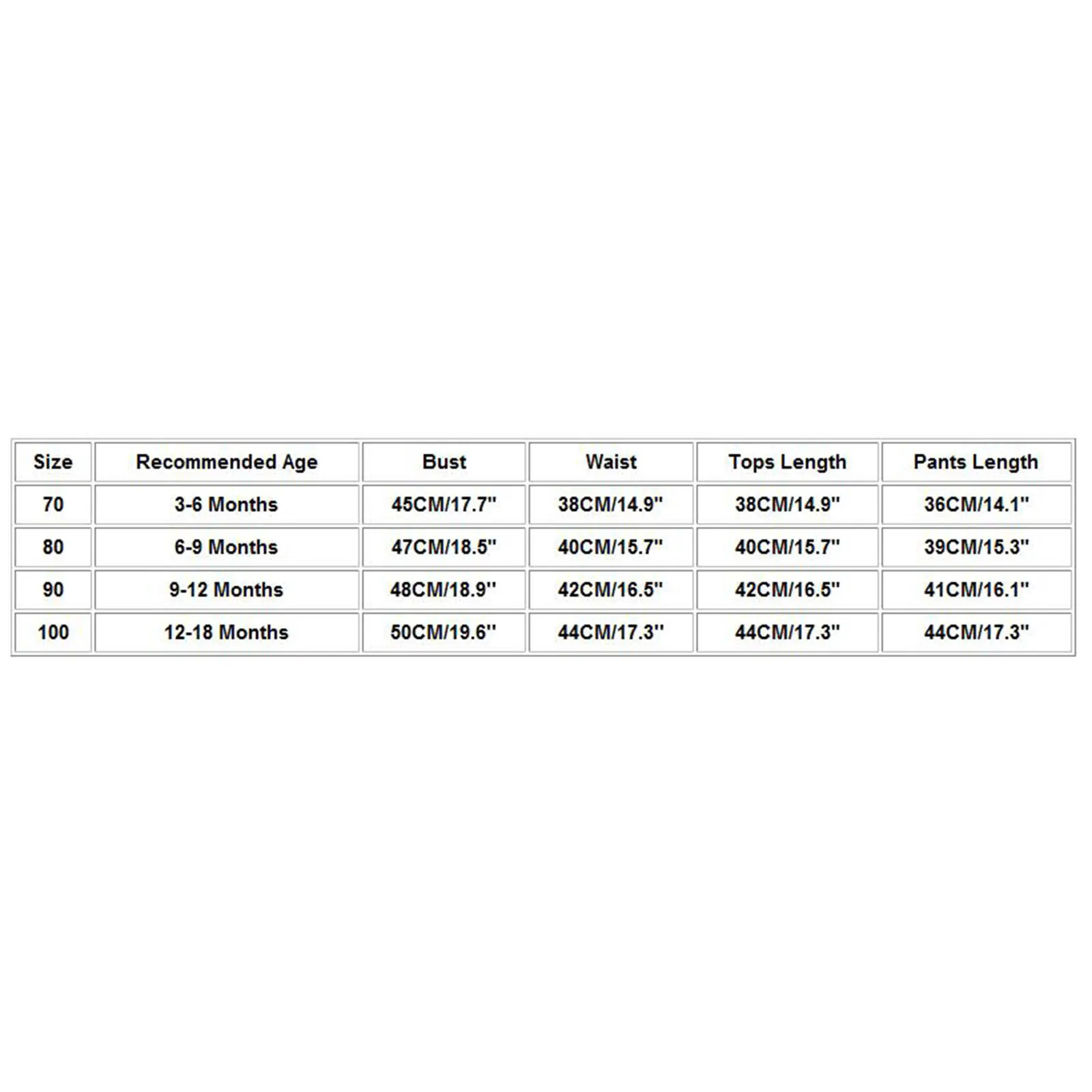 | Размер | Рекомендуемый возраст | Бюст | Талия | Длина топа | Длина брюк |