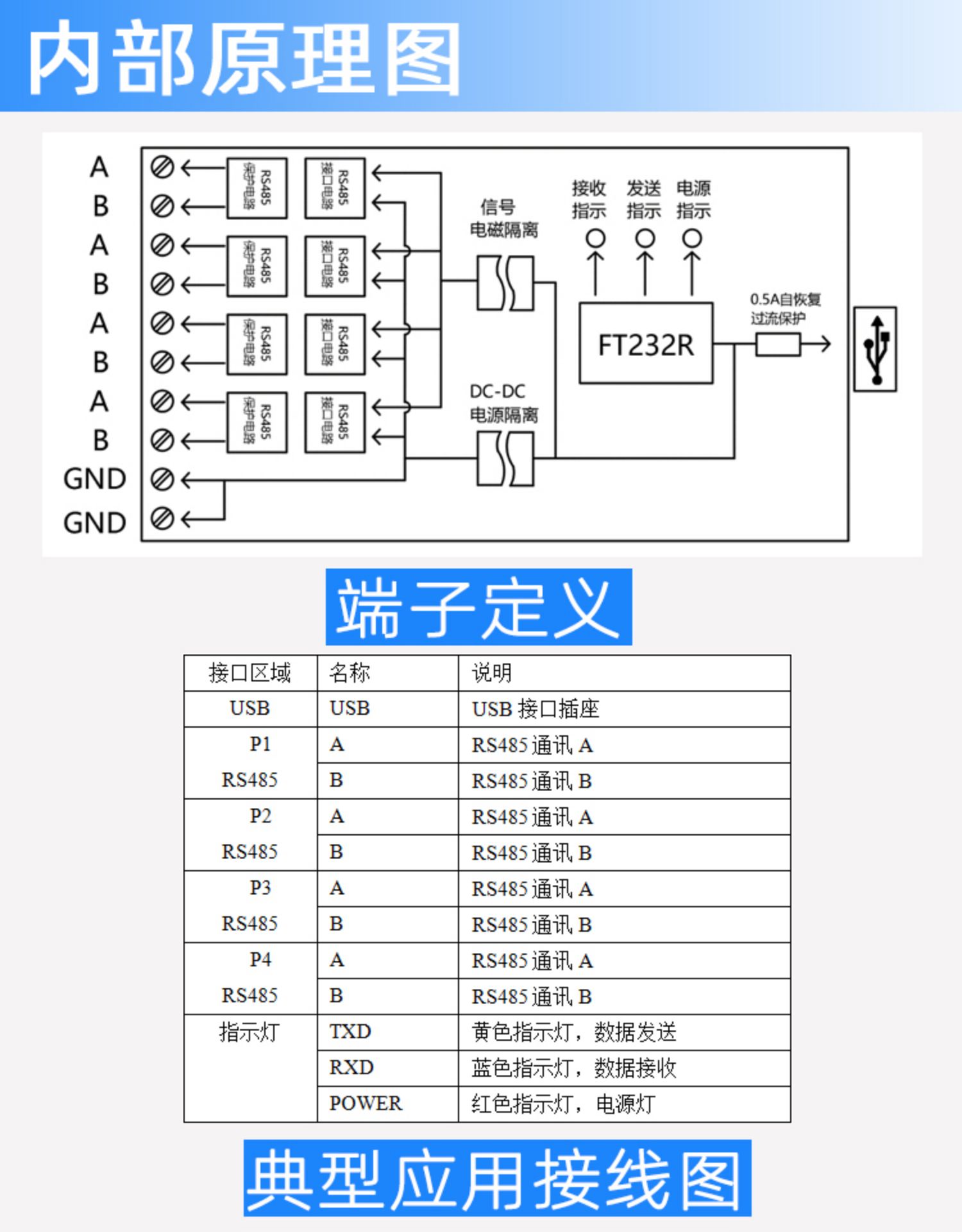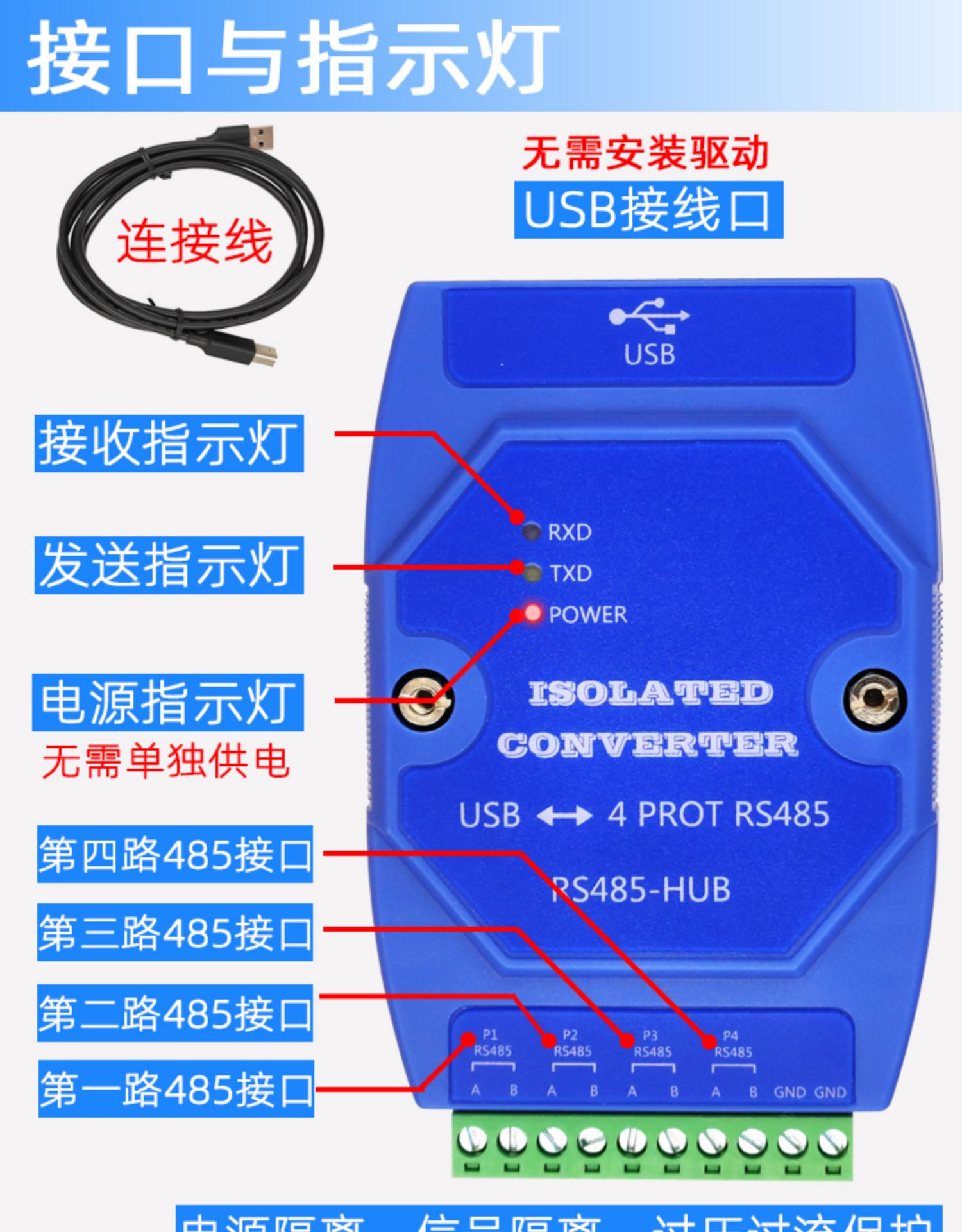Модель 1: USB на 4 последовательных порта RS485 (Генерировать1 COMПорты)