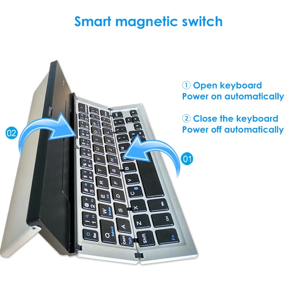 В сложенном виде bluetooth-клавиатура имеет ширину всего 2,20 дюйма и легко помещается в рюкзак или карман.