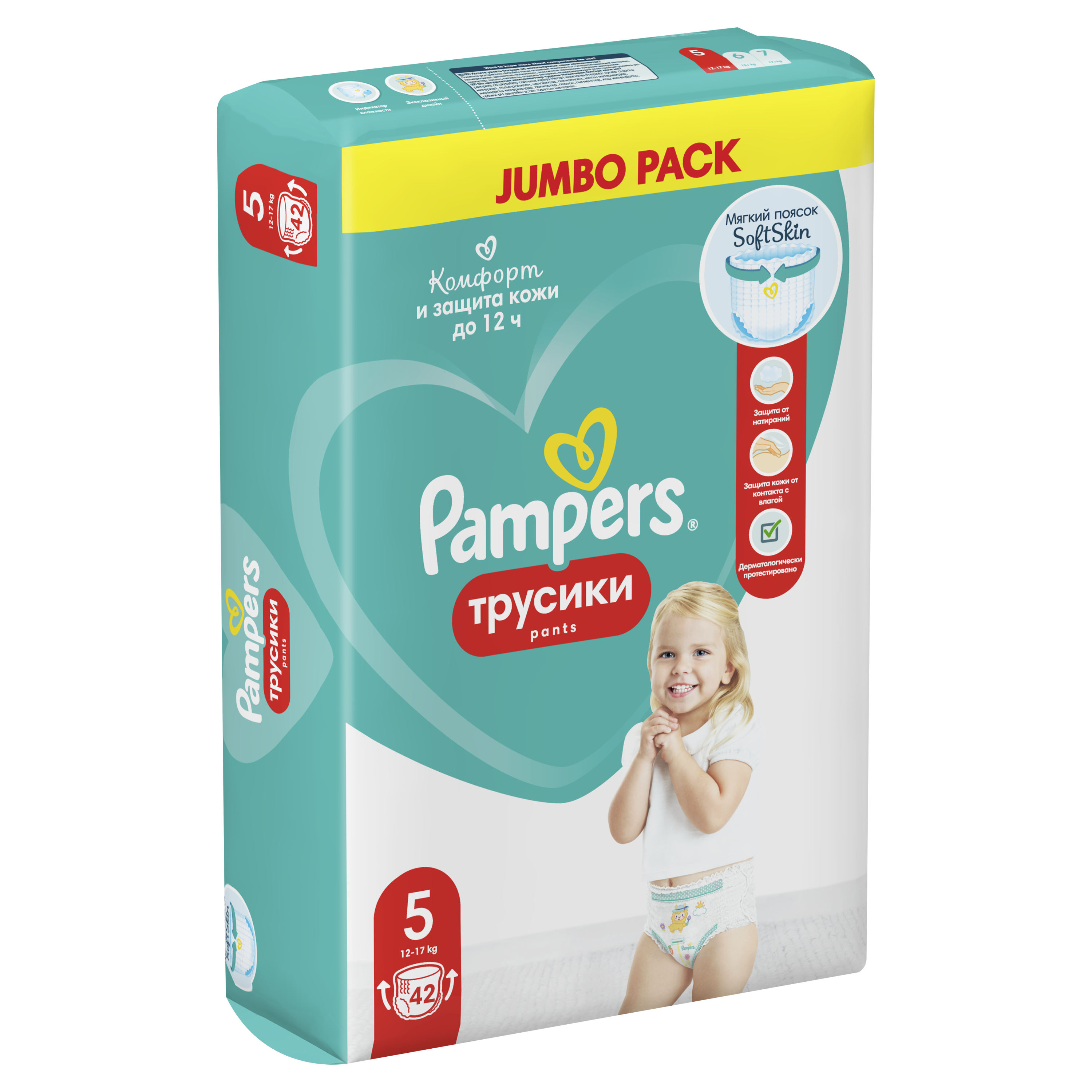 Культовые трусики Pampers стали ещё лучше! Ведь теперь у них есть новый, ещё более мягкий поясок SoftSkin, который нежно прилегает к животику и защищает нежную кожу малыша от натираний. Мягкие бортики вокруг ножек помогают избежать протеканий, технология мгновенного впитывания надёжно защищает кожу малыша от контакта с влагой до 12 часов, а новые милые дизайны превратят смену трусиков в увлекательную игру.