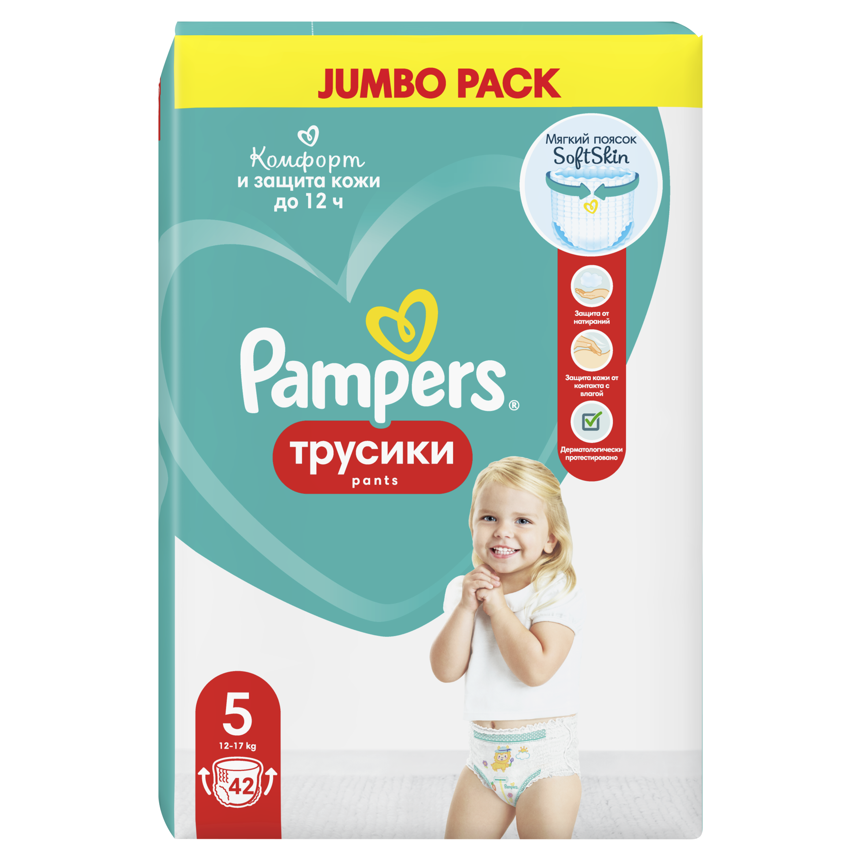 Pampers Pants Трусики Размер 5, 42 шт, 12kg-17kg, с Анатомической Посадкой для Комфорта Кожи