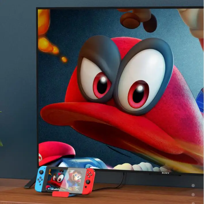 Воспроизведение во время быстрой зарядки:Наша док-станция Switch TV специально разработана для замены оригинальной док-станции Nintendo switch или телефона, которая может заряжать коммутатор одновременно во время воспроизведения с помощью ТВ-дисплея. После подключения док-адаптера к телевизору/проектору с помощью кабеля HDMI и подключенного зарядного устройства вы можете просто пойти и играть в свою игру. В нем есть кнопка для режима ТВ и док-станции.