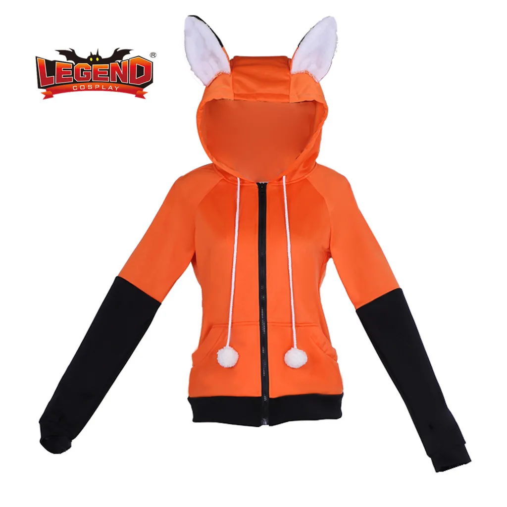 Cosplay legend Adult Cute Fox Ear Zipper Hoodies Coat Autumn Winter Orange Velvet Hoodies Jacket Custom Made H001