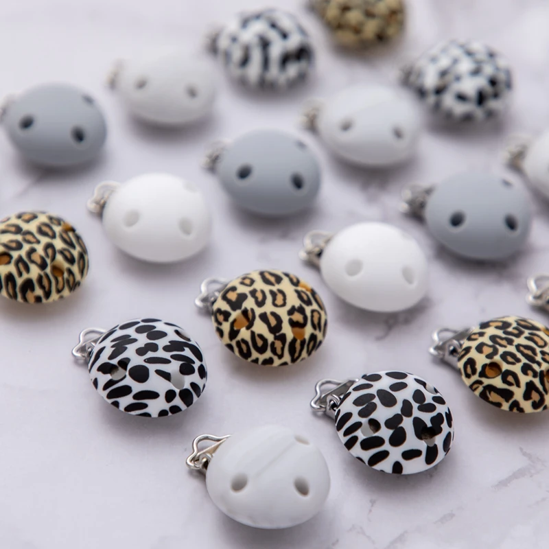 Название продукта: силиконовый зажим для соски Размеры: 4,5 см * 3,2 см Стиль: белый, серый, мраморный, Леопардовый, зеленый, розовый, синий, белый леопардовый Количество: 5 шт.