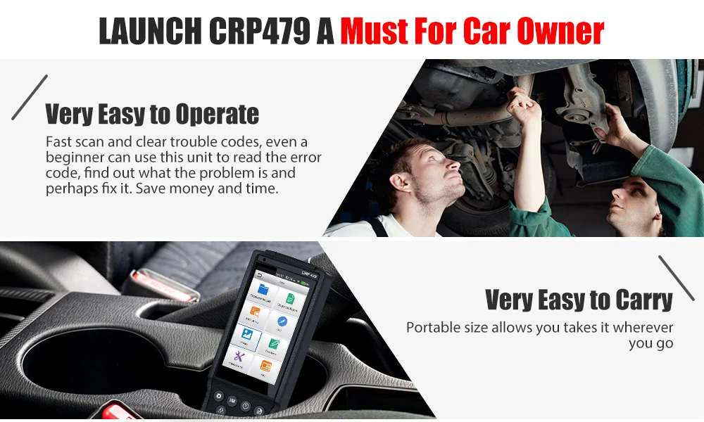 2.CRP479 поддерживает все OBD2/EOBD/JOBD + диагностику двигателя + 15 функций сброса, если вы хотите диагностировать полную систему, я предлагаю вам проверить Запуск CRP909 или Thinktool.