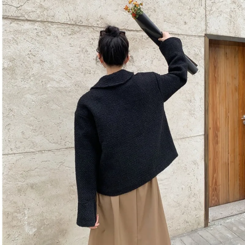 Винтажное модное Дизайнерское черное шерстяное пальто на шнуровке женская