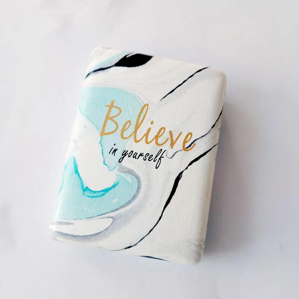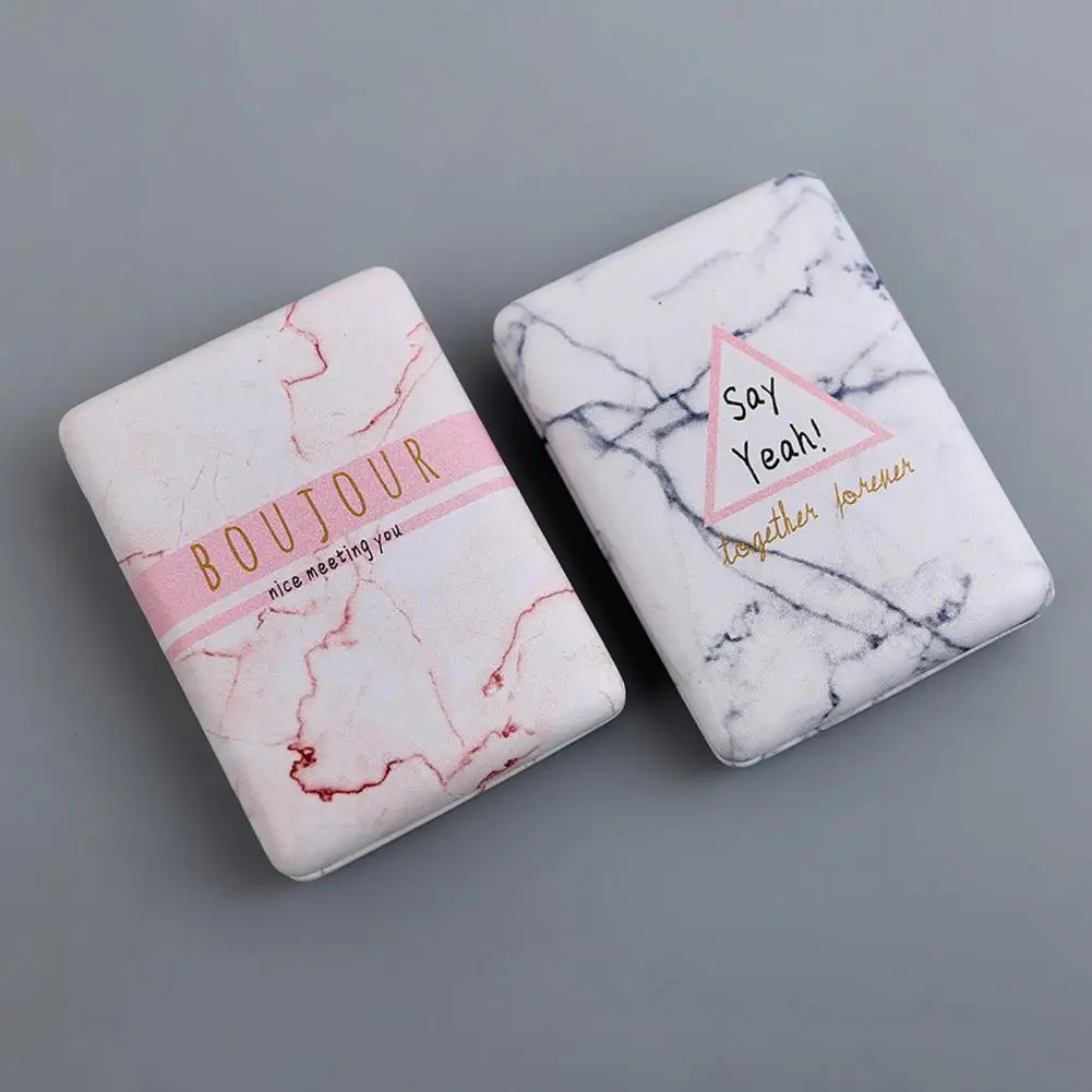 Двустороннее косметическое зеркало также имеет мраморный дизайн на поверхности.