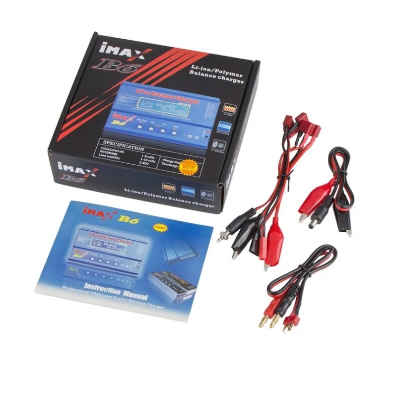 Характеристики:Штепсельная вилка переменного тока: ЕС/США/Великобритания опциональноЦвет: синийДиапазон рабочего напряжения: DC 10,0-20,0 Вольт/AC 100-240 В 50/60 ГцМощность цепи: Макс. Мощность зарядки: 80 Вт/Макс. Мощность разряда 10 ВтДиапазон заряда: 0,1-6.0AДиапазон тока разряда: 0,1-2.0AСлив тока для балансировки Li-po: 300mAh/cellLiIon/LiPo/LiFe cells : 1-6 cellsNiCd/NiMH клетки: 1-15 ячеекPb Напряжение батареи: 2 ~ 20 вРазмер изделия: 133*142*36 ммИнформация о посылка:Посылка: 21*16,5*5,5 см/8,3*6,5 * 2.2inВес посылка: около 600 гПосылка:(Например: выберите «B6 с T вилкой»)Зарядное устройство для аккумулятора iMAX B6-1 шт.1 x входной кабель постоянного тока с зажимом типа крокодил1 х Т-образный выходной кабель1 x светящийся зарядный кабельЗарядный кабель от 1 xT до JSTЗарядный кабель от T до JR-1 шт.1 х т до защищенный зажим «крокодил» зарядный кабель1 х руководство на английском языке