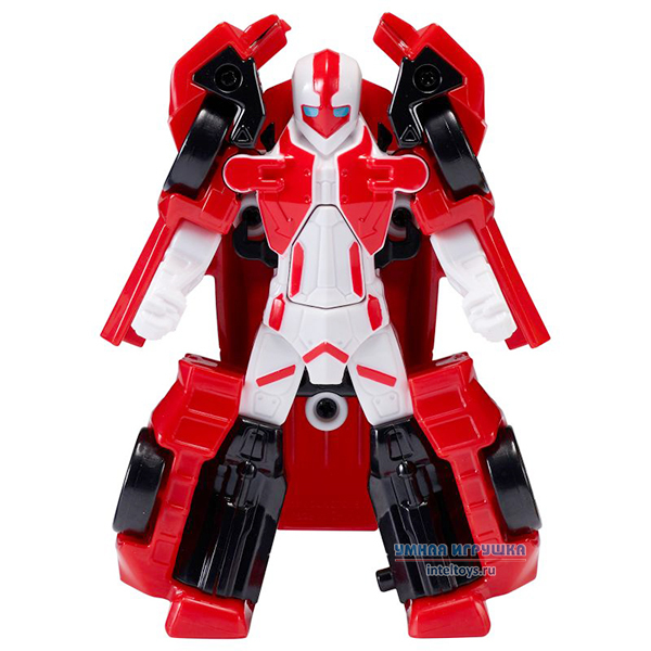 Маленький исследователь вращает подвижные детали, и пластмассовый великан становится гоночной машиной. Трансформацию можно проводить много раз. Инструкция по сборке подсказывает, как правильно складывать элементы. Красный спортивный автомобиль с покатым корпусом, тонированными стеклами и оригинальными дисками так и рвется вперед. В таком обличье ваш тобот точно станет победителем соревнований!