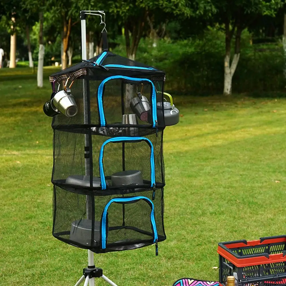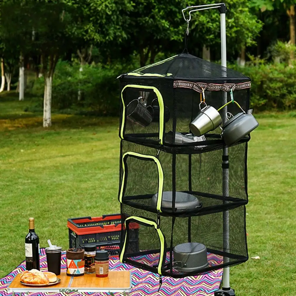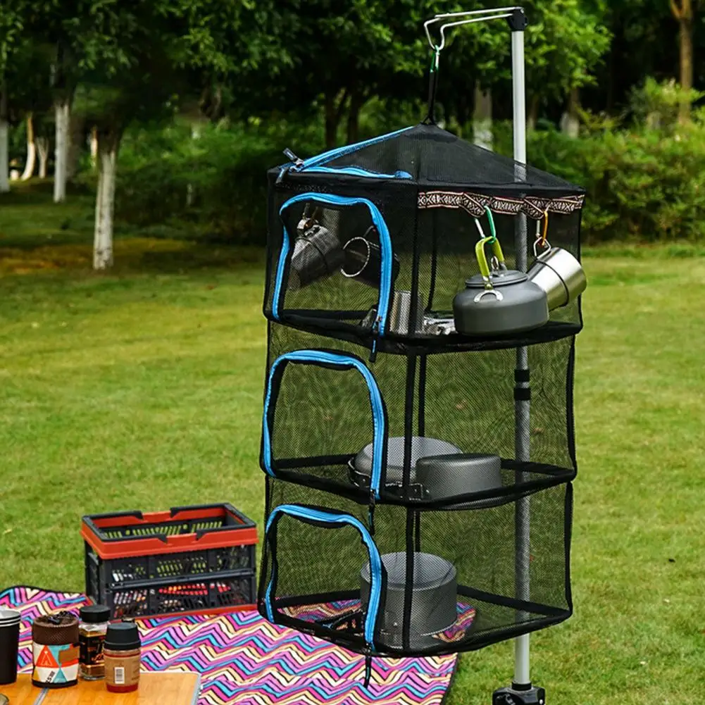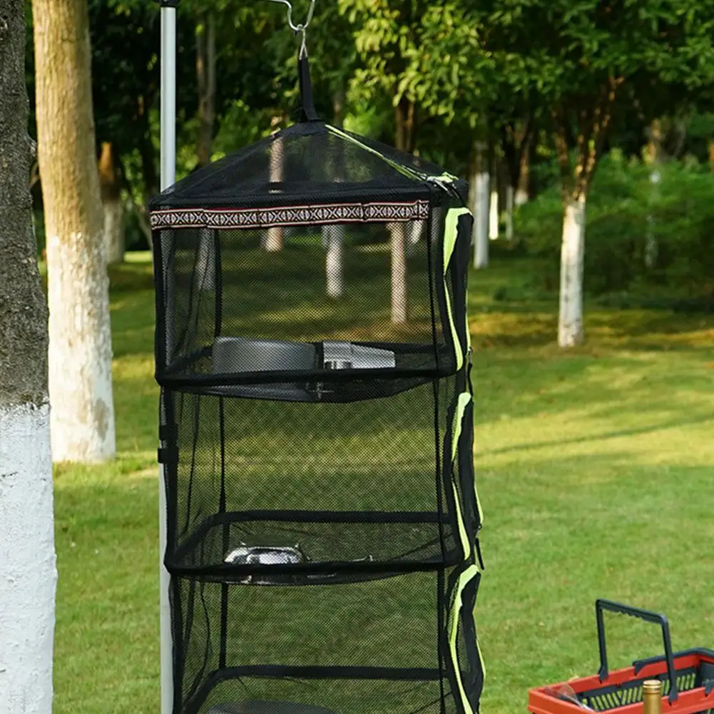 Foldable 4 Layer Hanging Drying Net Fishing Drying Rack with Zippers Dryer Mesh Fish Vegetables Fruit Herb Hanging Net Dry Cage