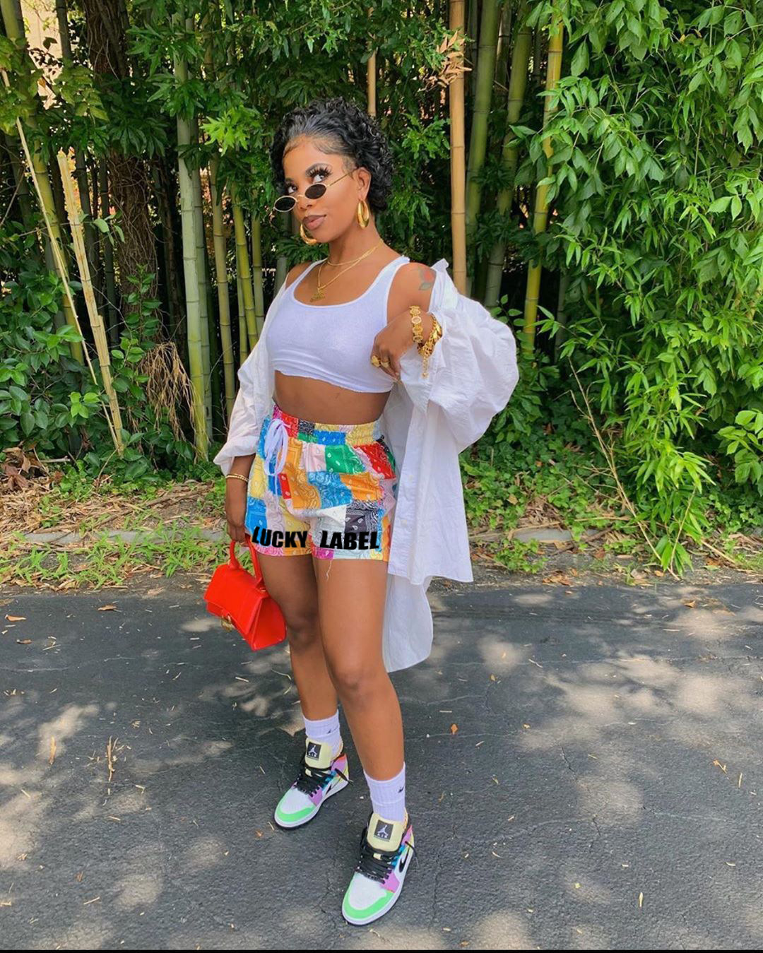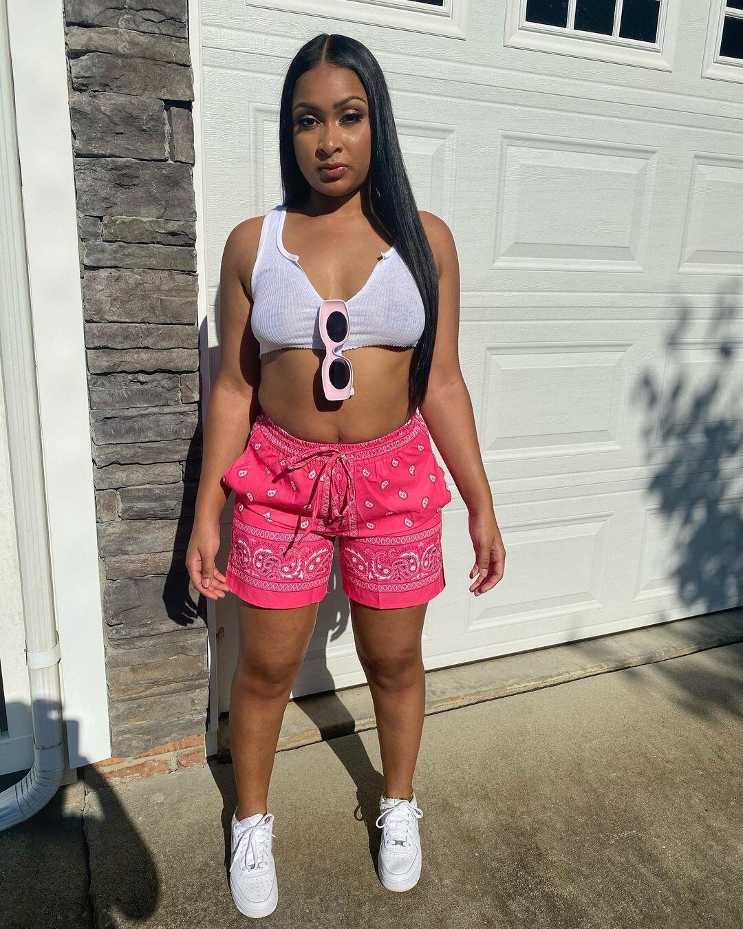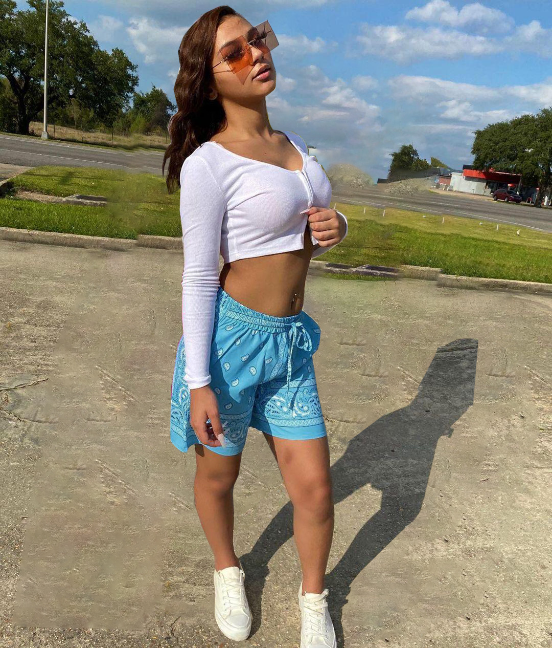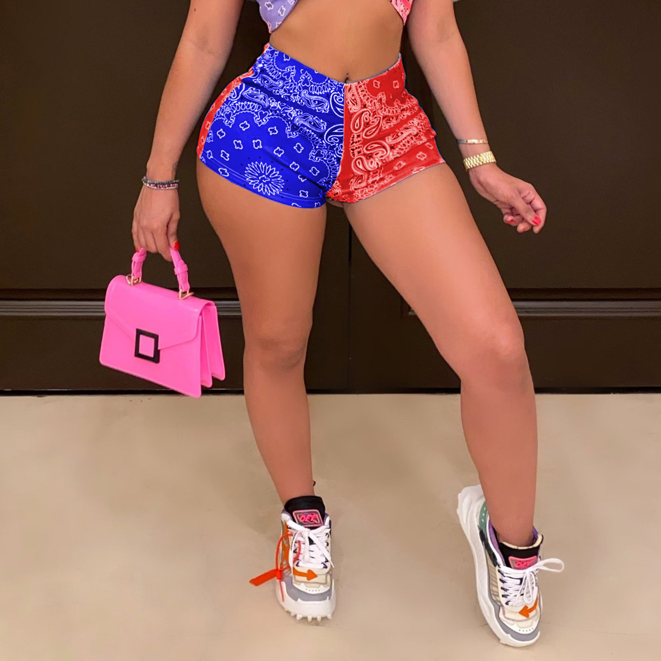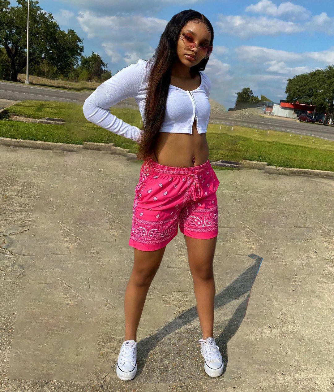 Шорты с высокой талией; Цветочный принт; Дизайн с сочетающимися цветами; Простой и стильный.