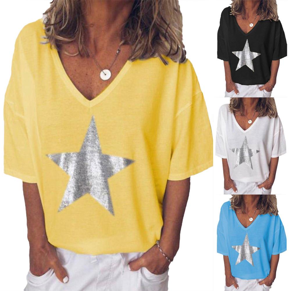 Женские футболки размера плюс 5XL с принтом звезды, летние универсальные футболки, топы, женские футболки с коротким рукавом, женские футболки, футболки s mujer camisetas