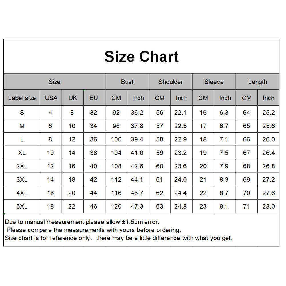 [Наш Размер XL] Обхват груди: 104 см/40,94 ', ширина плеч: 59 см/23,23', длина рукава: 19 см/7,48 ', длина: 67 см/26,38' (прибл.)