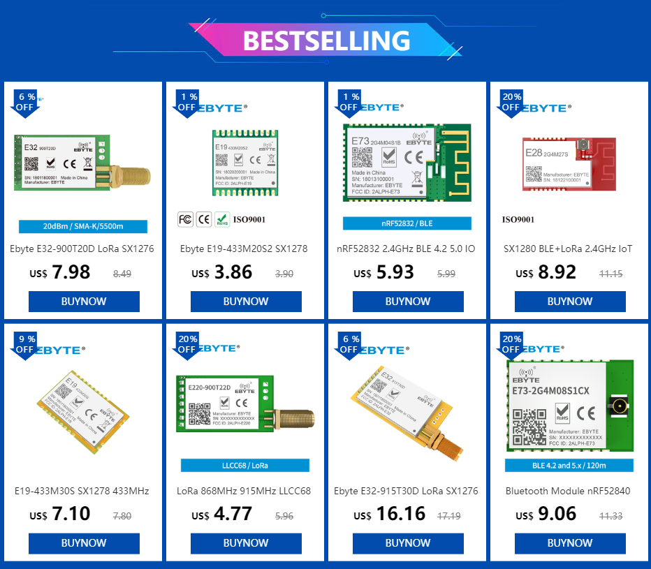 Модуль беспроводного последовательного порта на основе импортированного Semtech обновленной версии SX1278/SX1276 RF chip