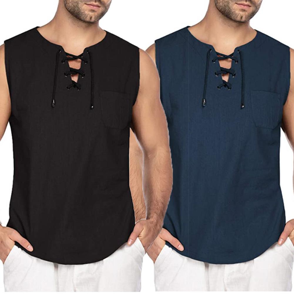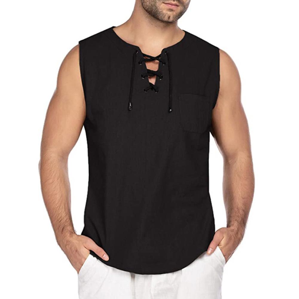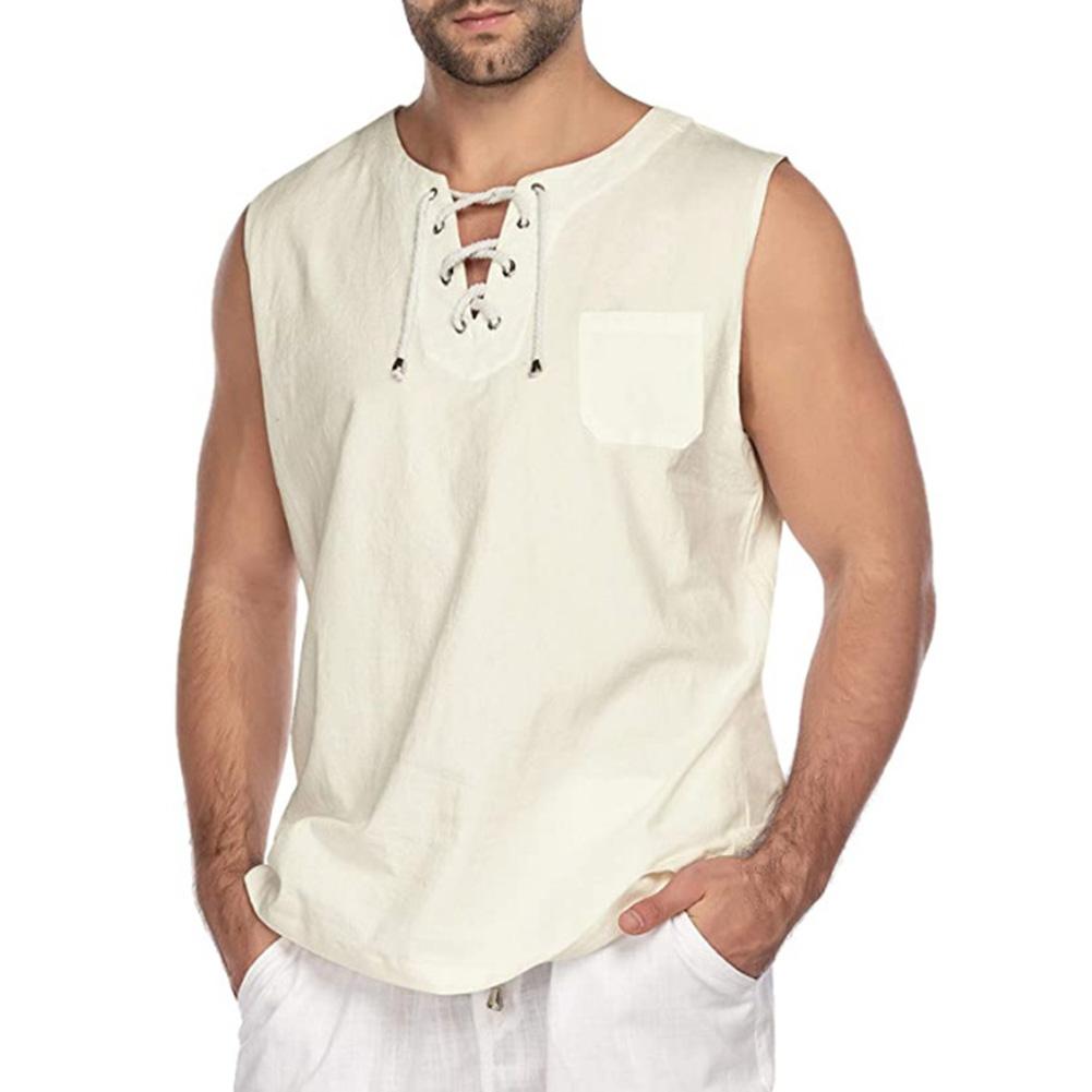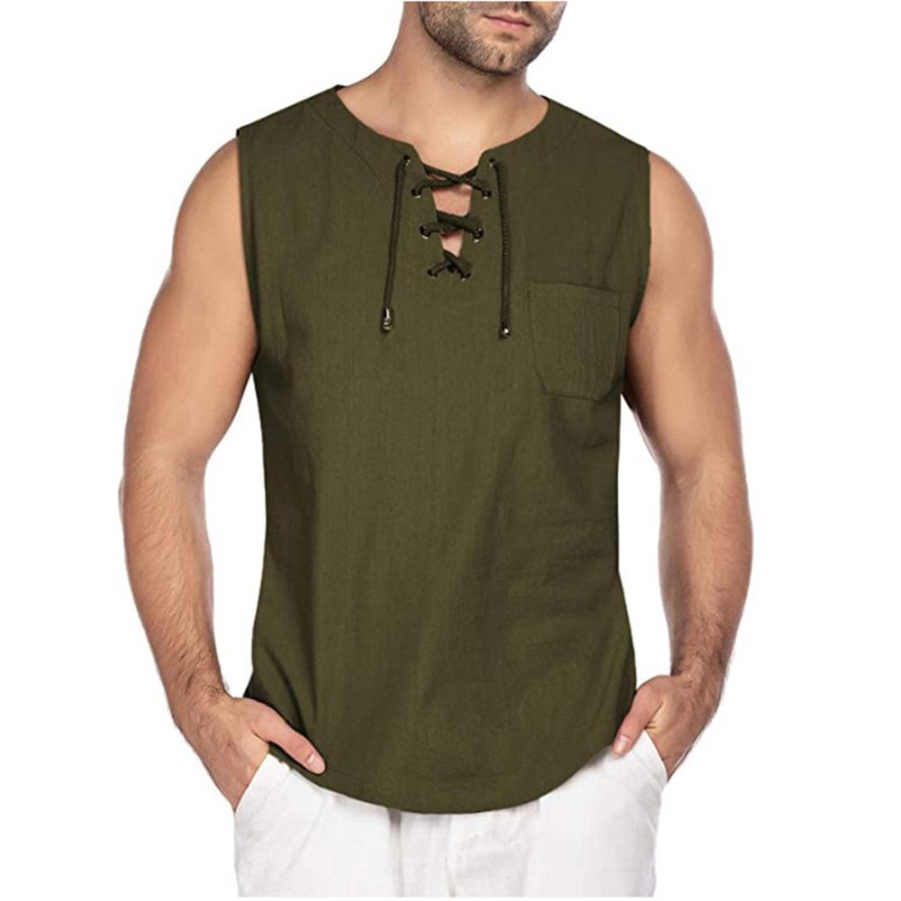 Повседневная Летняя мужская однотонная майка без рукавов с v-образным вырезом и бандажным карманом