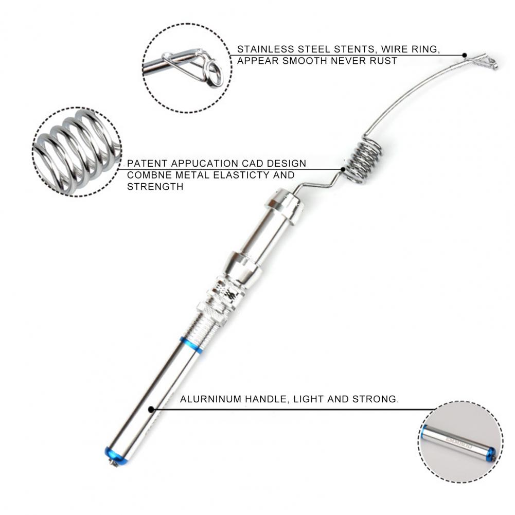Портативная Удочка может использоваться с мини-спиннинговыми колесами или колесами для подледной рыбалки.