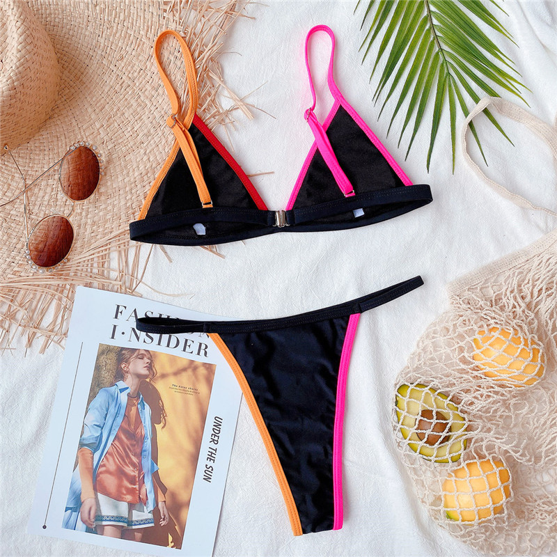 Женский сексуальный купальник контрастных цветов, топ без рукавов на бретельках, трусы, купальник