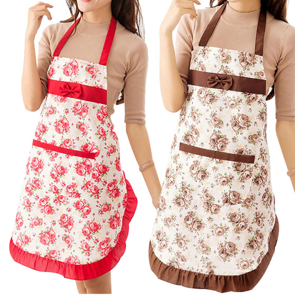 Новый стиль, модный кухонный фартук, бант, цветочный принт, полиэстер, карман для кухни в ресторане, Спецодежда для дома, кухонные принадлежности