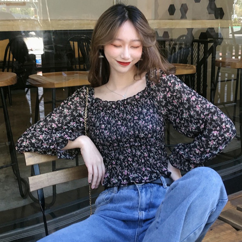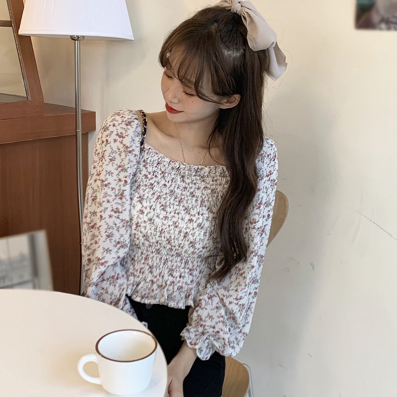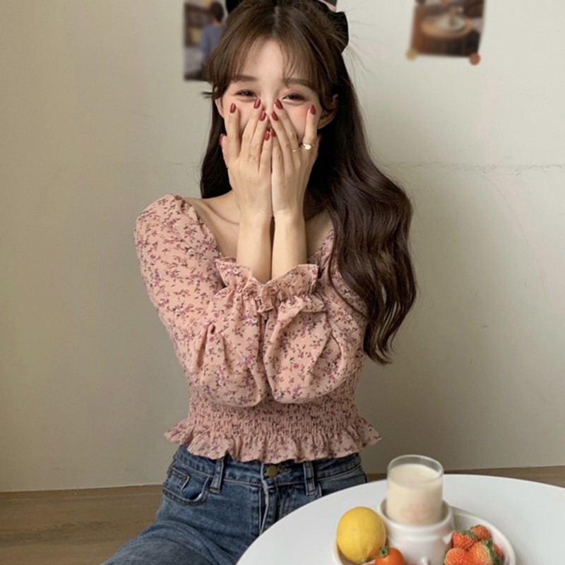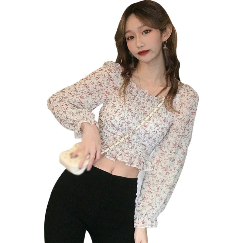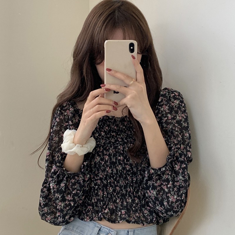 Особенности: квадратный воротник, сексуальный, милый, морщинистый, маленький цветочный, короткий, Топ