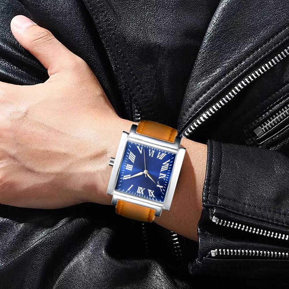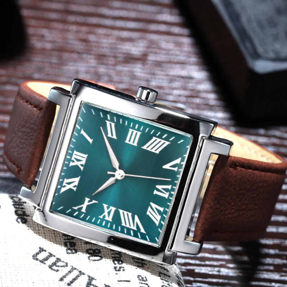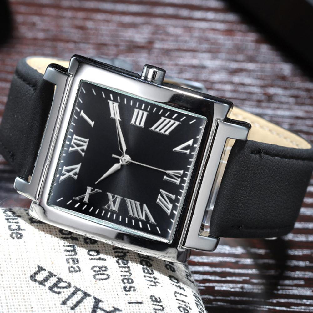 Модные мужские часы с квадратным циферблатом, римская цифра, ремешок из искусственной кожи, аналоговые кварцевые часы montre homme, часы, мужские наручные