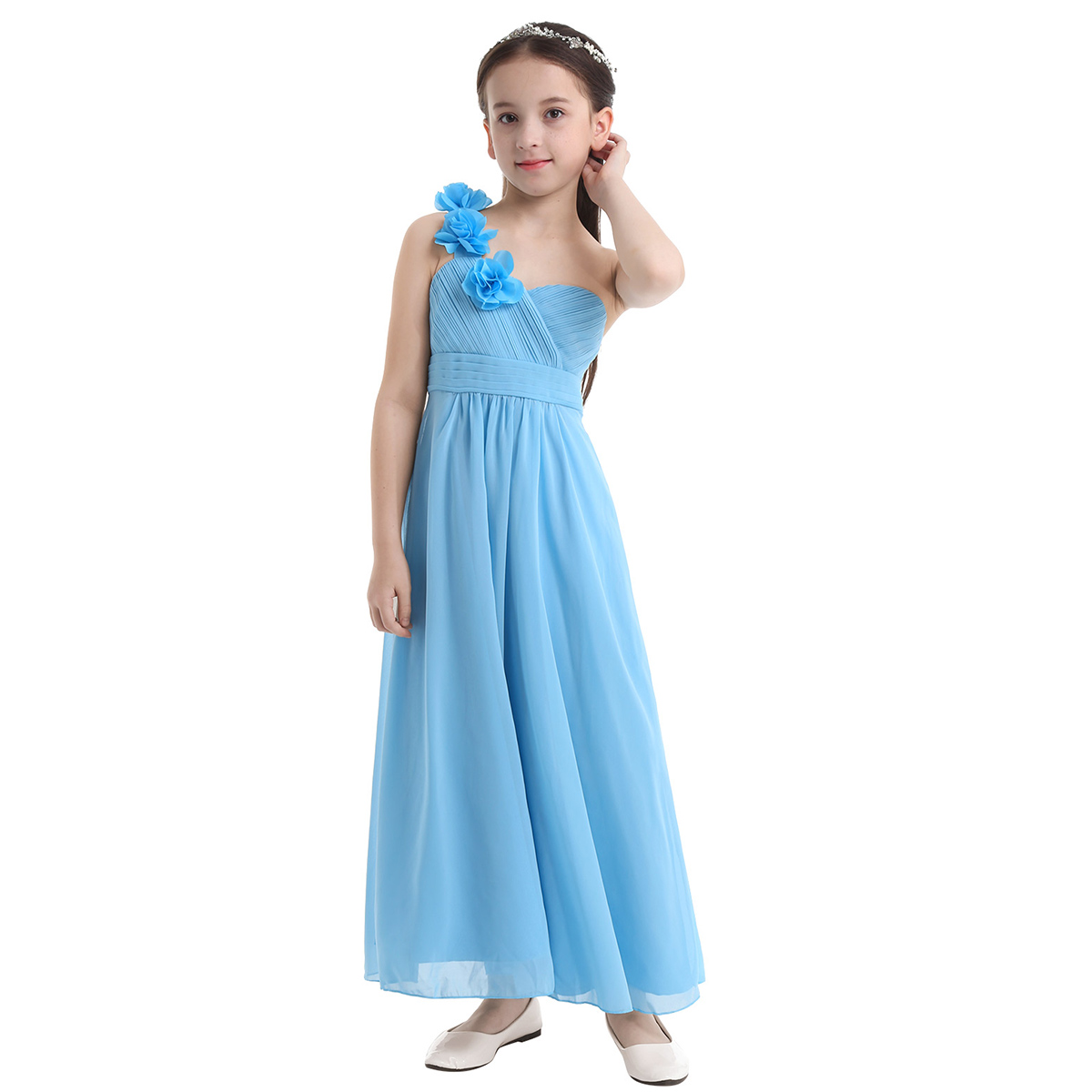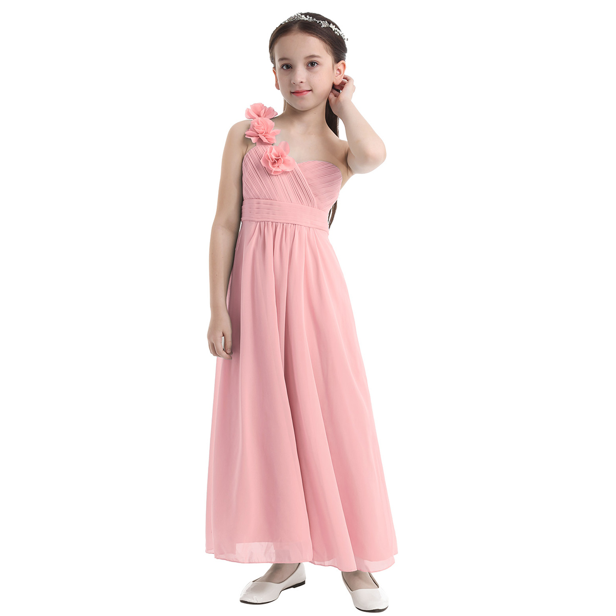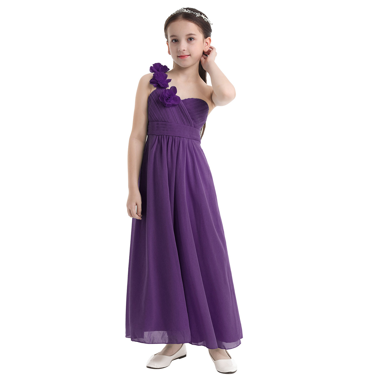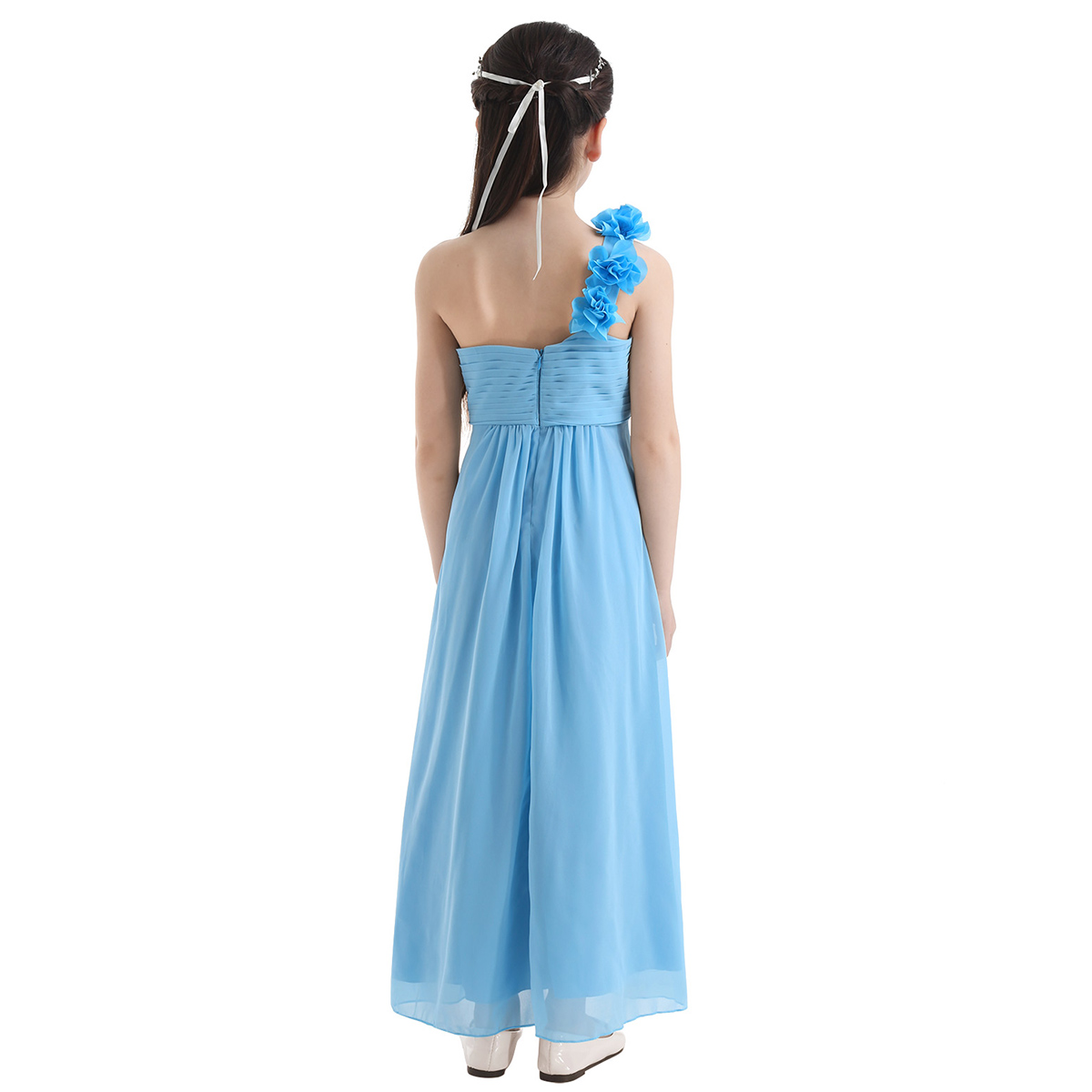 #4-14 Girls Chiffon One-shoulder Flower Girl Dress Princess Pageant Wedding Bridesmaid Birthday Party Dress SZ 4-14