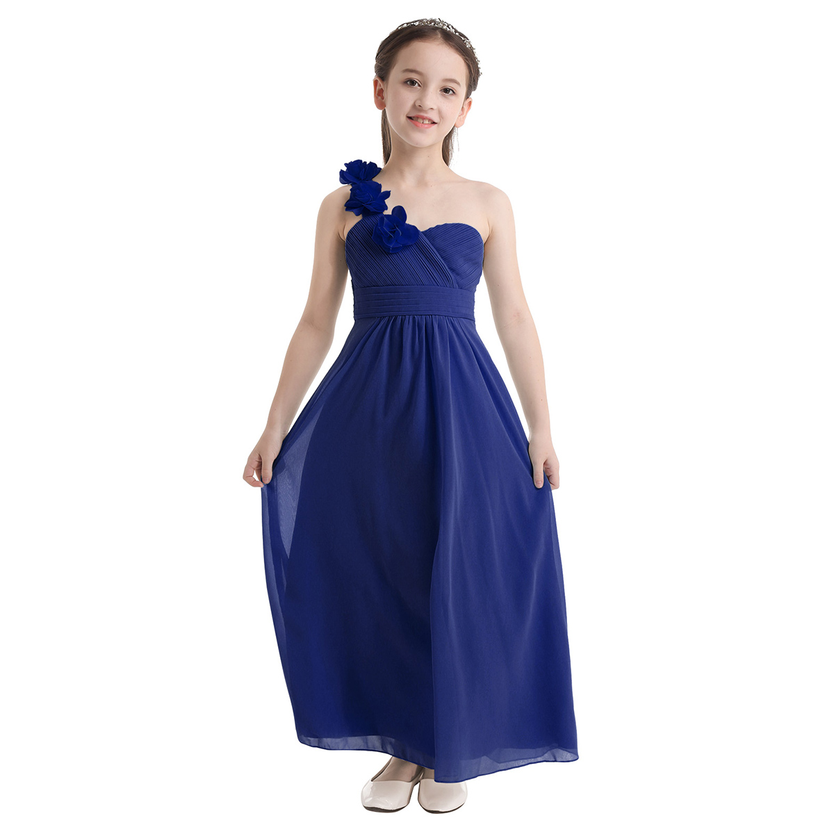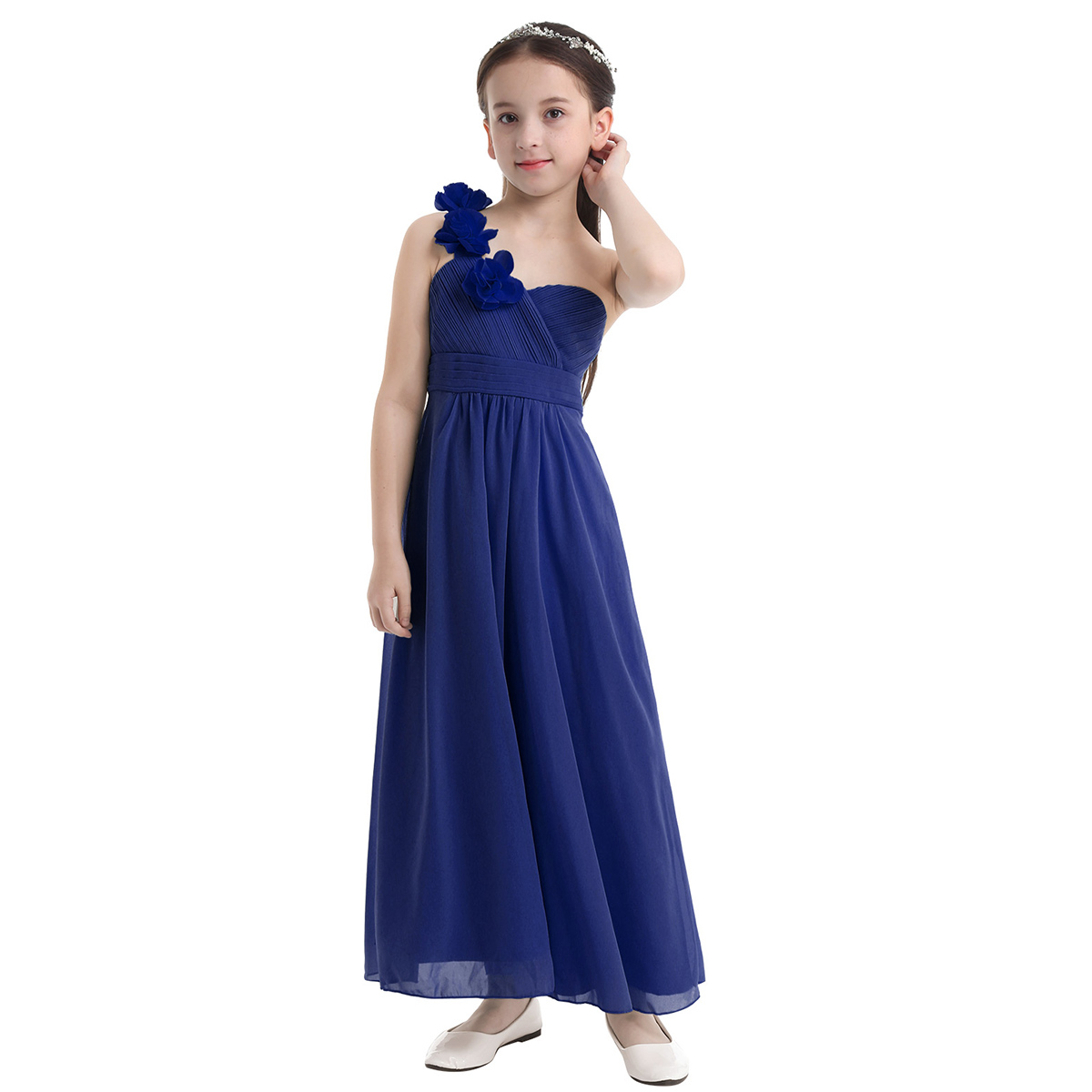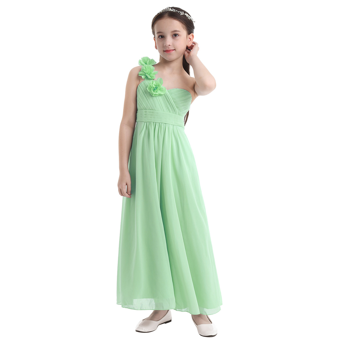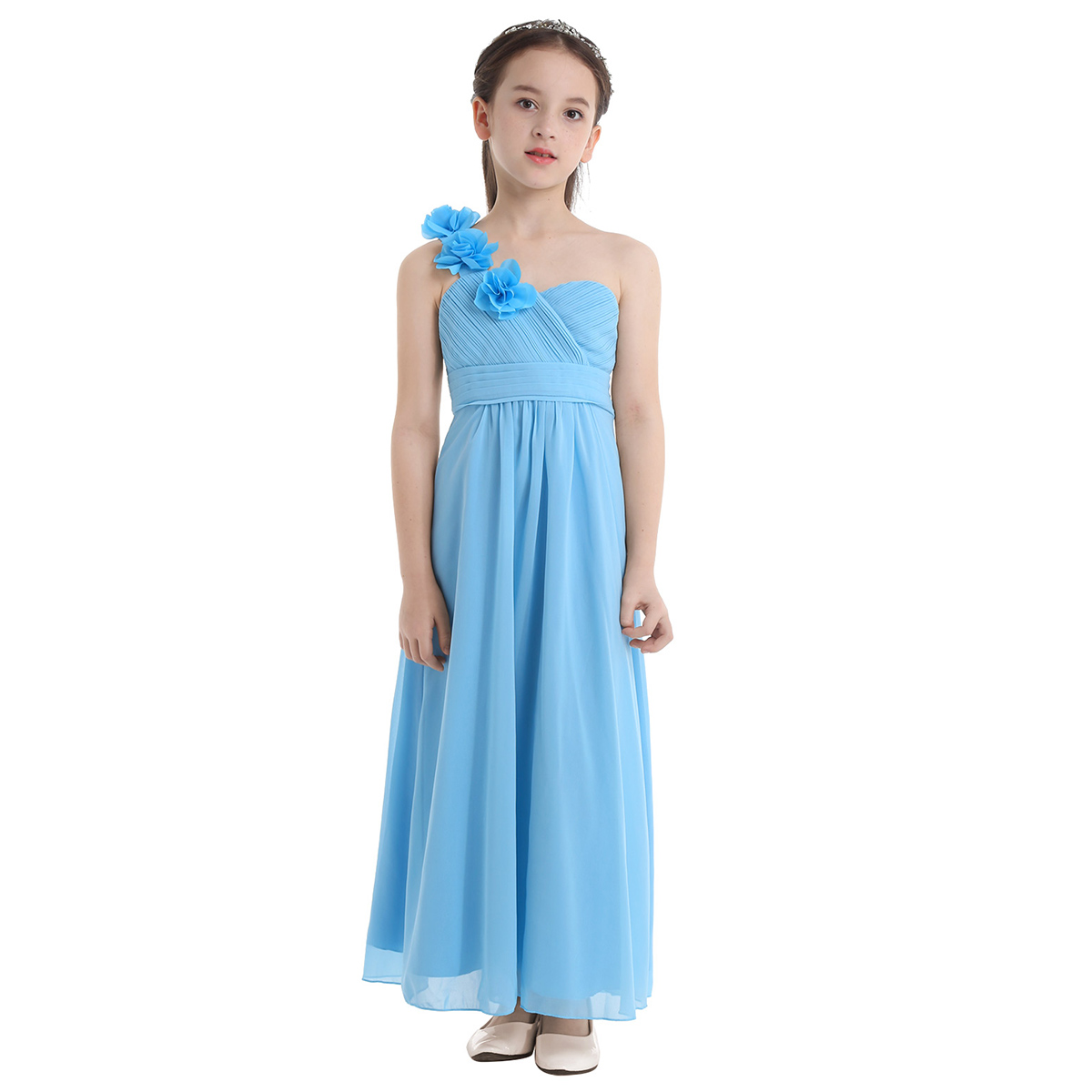 #4-14 Girls Chiffon One-shoulder Flower Girl Dress Princess Pageant Wedding Bridesmaid Birthday Party Dress SZ 4-14