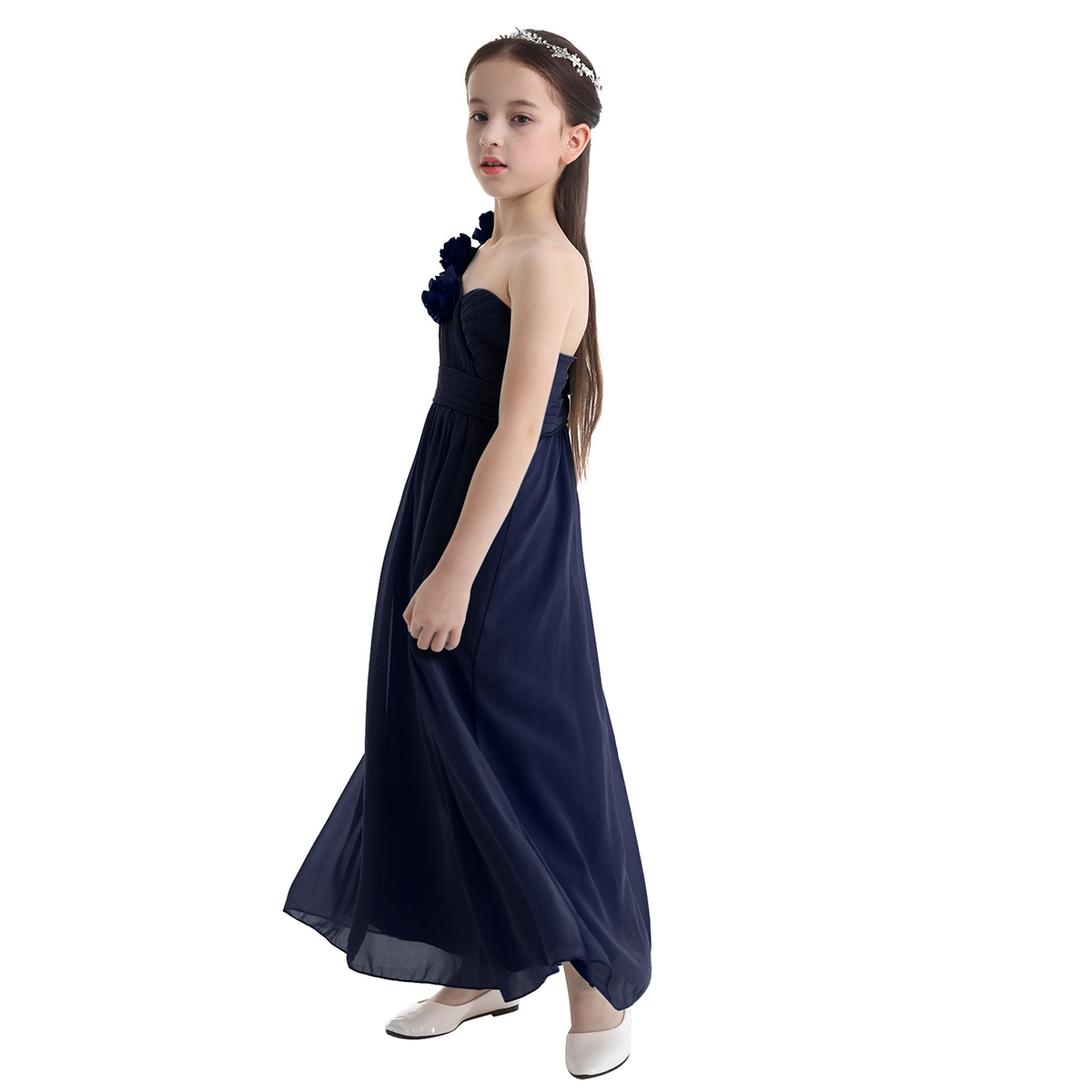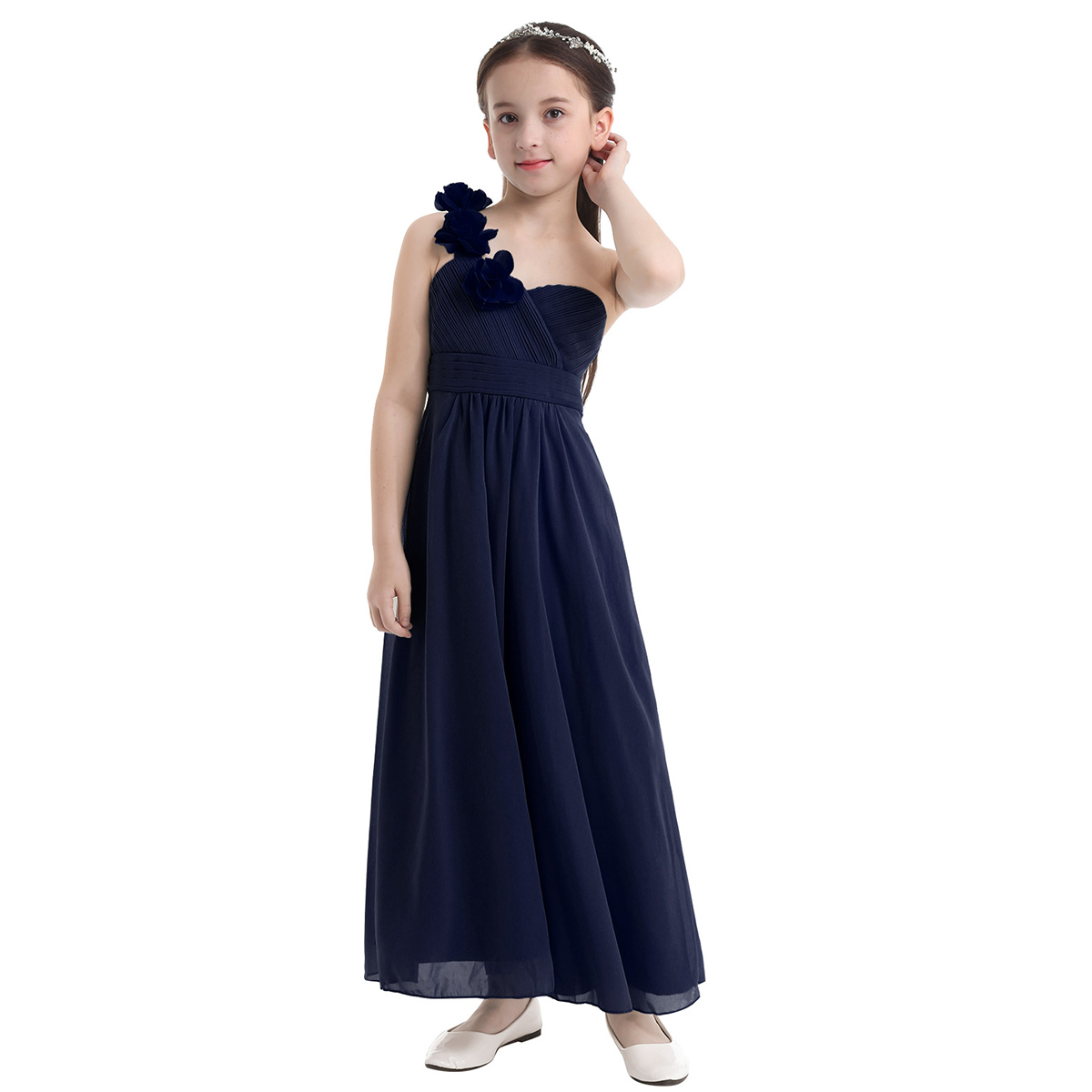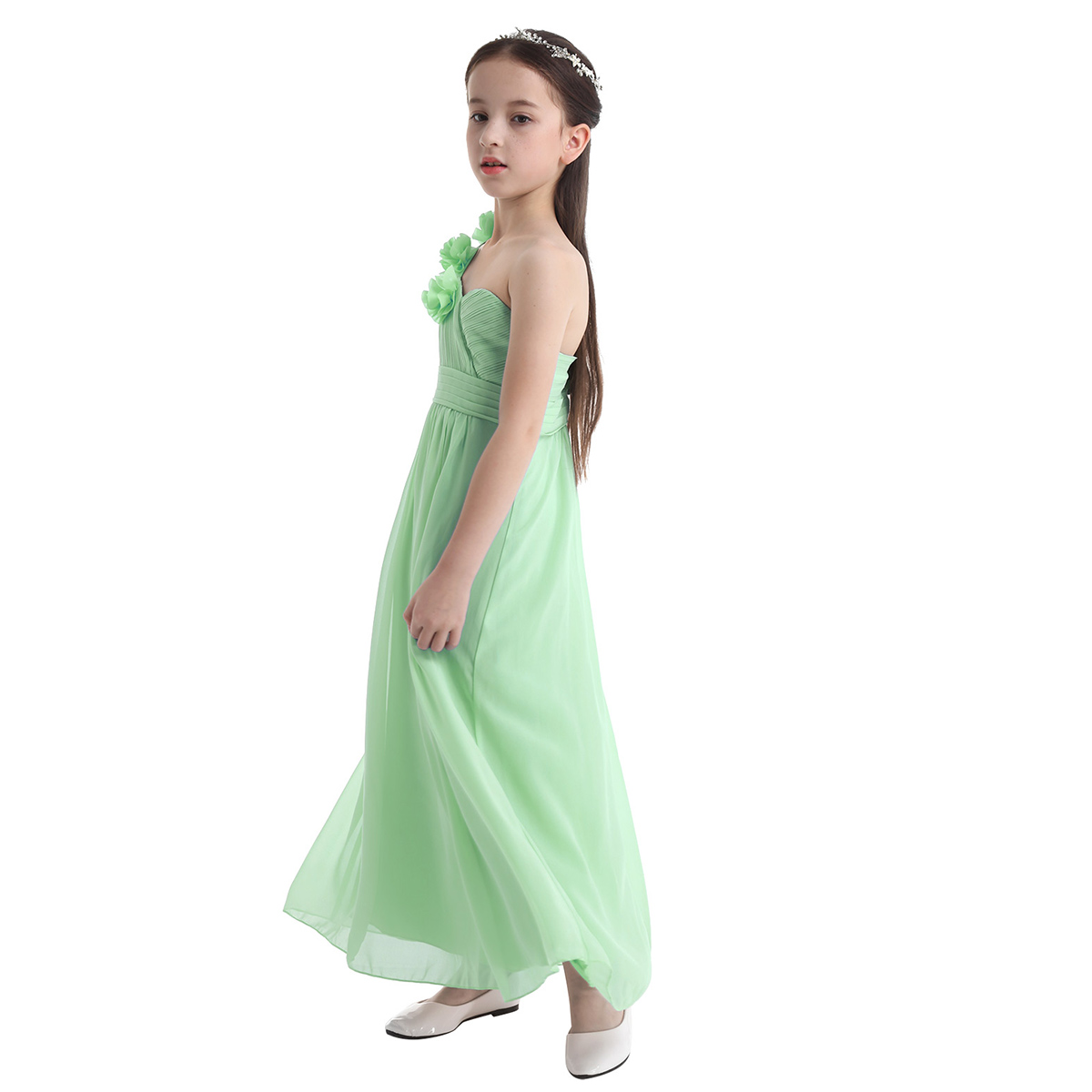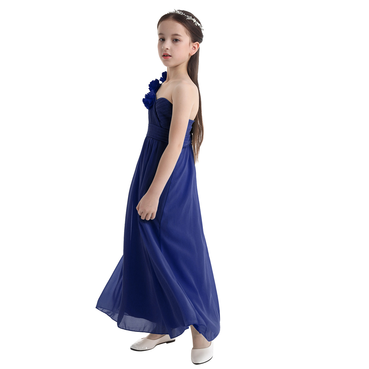 #4-14 Girls Chiffon One-shoulder Flower Girl Dress Princess Pageant Wedding Bridesmaid Birthday Party Dress SZ 4-14