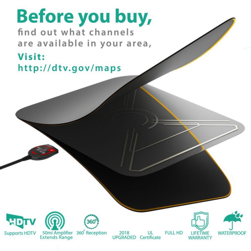 Диапазон приема: 980 миль, как правило, антенна должна держать далеко от источника беспокойства, кондиционера/холодильника/микроволновой печи и т. Д. Усилитель антенны включен для обеспечения дополнительного диапазона и максимального приема сигнала для большего количества каналов, если вы находитесь вдали от башен вещания. Важное значение: если сигнал не может быть получен с помощью внешнего усилителя, удалите антенный усилитель и повторите попытку.