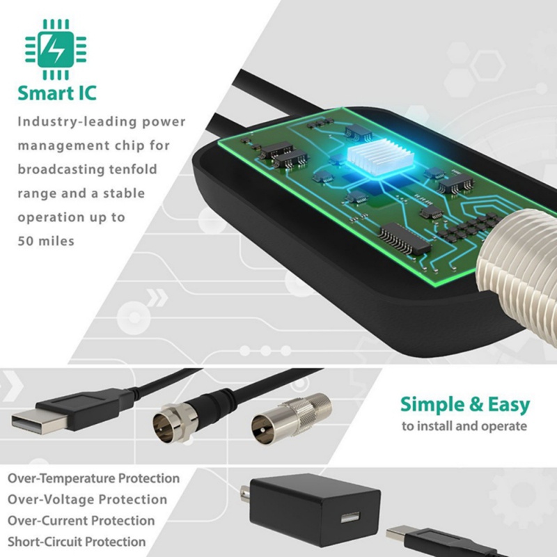 Усиленные внутренние антенны Victor с 50-980 милями и 1080P 4K/VHF/UHF/FM усилителем приема, съемным усилителем и 13-футовым высокопроизводительным коаксиальным кабелем. Усиленная антенна может быть размещена практически в любом месте вашего дома