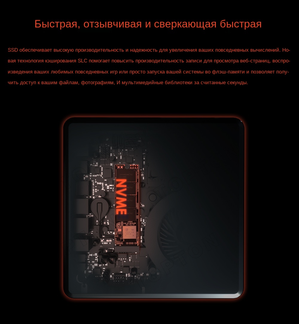 Хранение: 1 * M.2 22x80 SATA/NVMe/PCIE3.0x4SSD + 1*2,5 ''SATA SSD/HDD